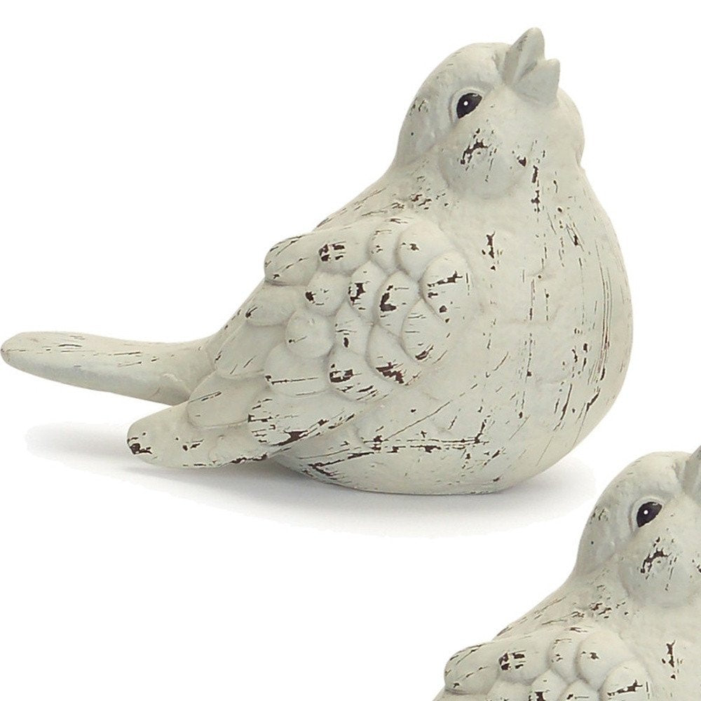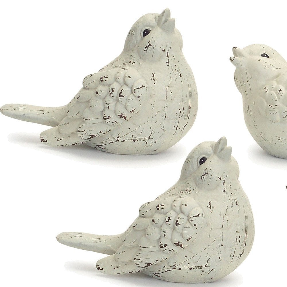 This set of four ivory ceramic bird figurines will add a beautiful decorative accent to your decor. These pretty sculptural birds bring a touch of rustic outdoor beauty to your space. Purposefully distressed and weathered, these cute little terra cotta ceramic birds are a great way to accent your living room, bedroom, lounge, or office. 7-inch h x 9-inch w x 5-inch d.