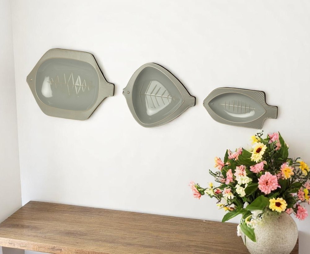 Set of Three Samira Gray Fish Metal Hanging Dimensional Sculpture