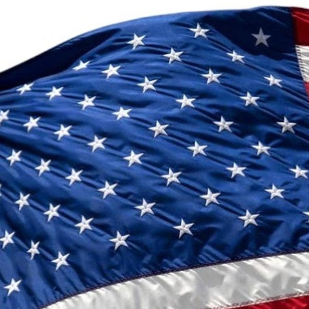 The set of two red white and blue embroidered nylon American flags adds a patriotic touch to your outdoor decor. Made from durable heavy duty nylon, these 3' x 5' flags are designed to withstand the elements while maintaining their vibrant colors. This flag set will not only enhance your outdoor decor but also serve as a symbol of USA pride and unity. Elevate your space with this timeless set that embodies the spirit of freedom and American heritage. 36-inch h x 50-inch w x 0.1-inch d.