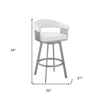 30" White And Gray Faux Leather And Iron Swivel Low Back Bar Height Bar Chair