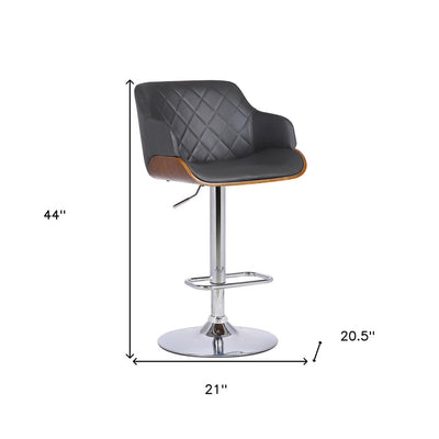 Gray and Silver Faux Leather and Iron Low Back Adjustable Height Swivel Bar Chair