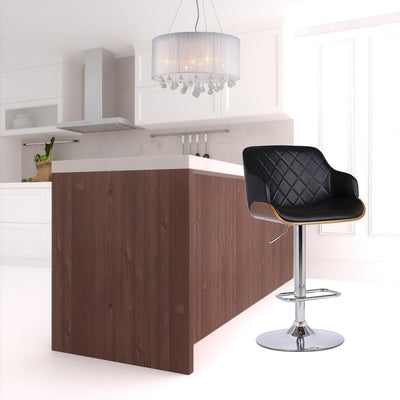 24" Black And Silver Solid Wood Swivel Low Back Adjustable Height Bar Chair