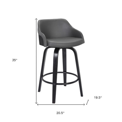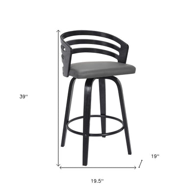 26" Gray And Black Faux Leather And Iron Swivel Low Back Counter Height Bar Chair