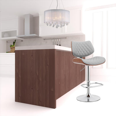 25" Gray and Silver Faux Leather and Iron Counter Height Swivel Bar Chair
