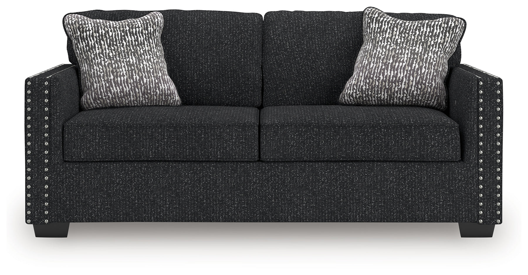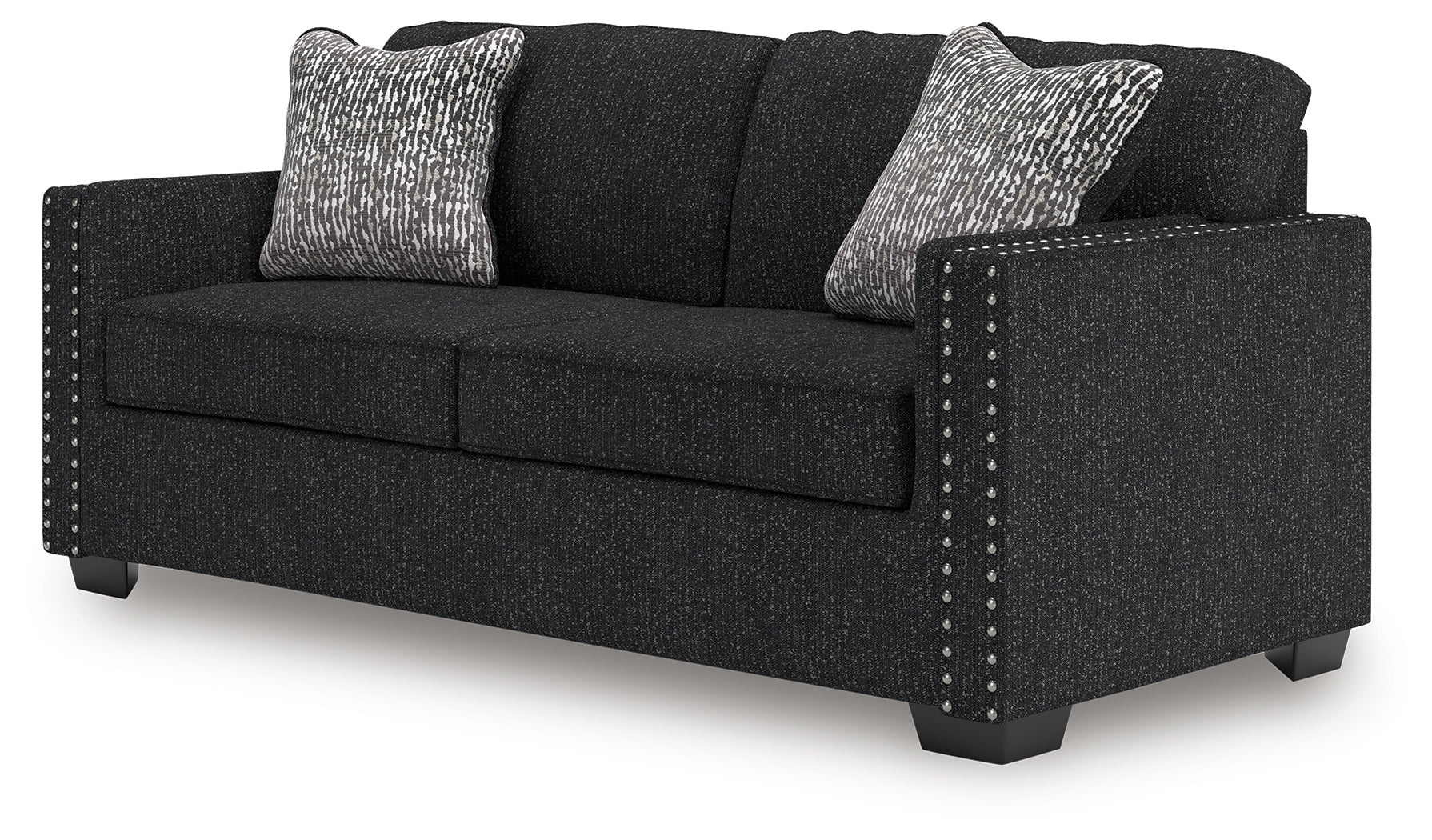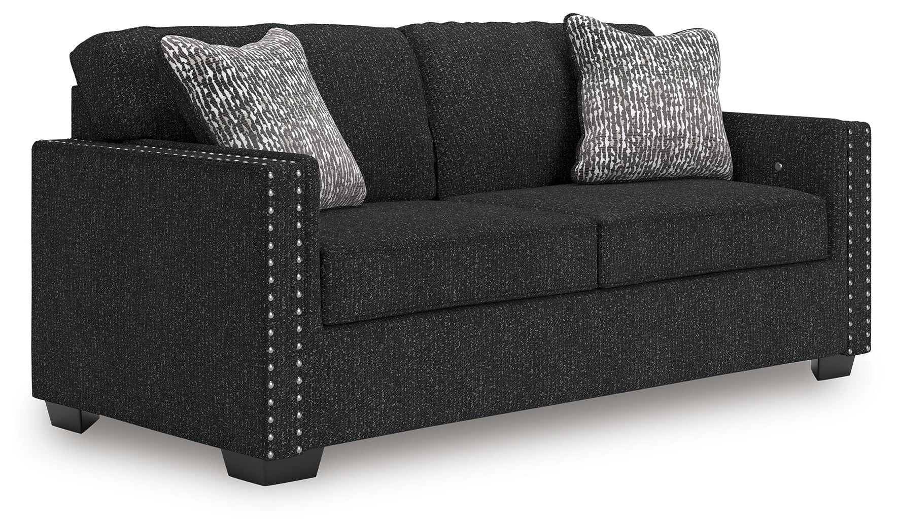 This stunning loveseat leaves a lasting impression. Its cozy cushions, chic coal-colored upholstery and striking nailhead trim are a perfect blend of comfort and contemporary design. And here’s the showstopper—ambient red, white and blue LED lighting along the loveseat's base. The look is simply wow.