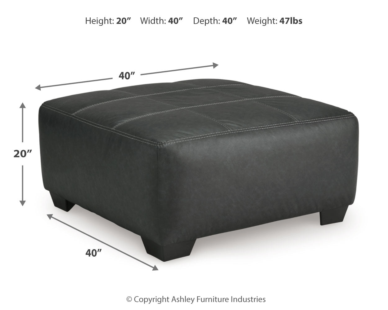 | Oversized Accent Ottoman | 40" | 40" | 20" |