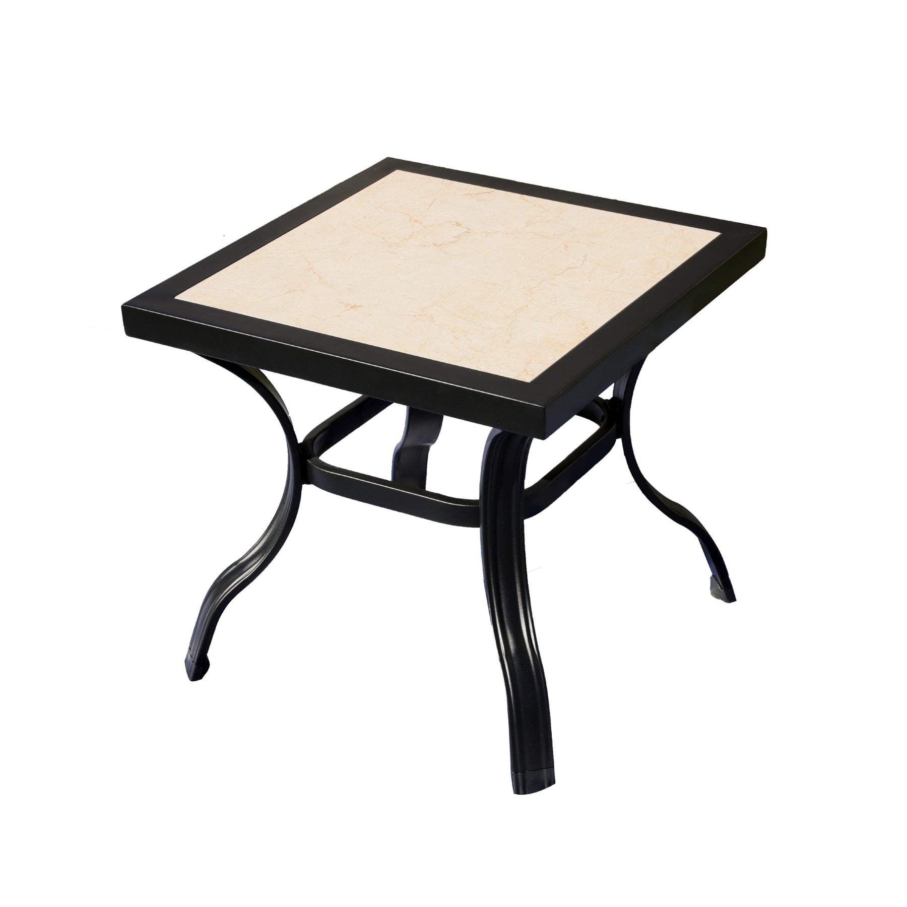 This 21 inches beige and ivory square ceramic outdoor side table will elevate the decor of your outdoor space, inspiring compliments from any guest. This side table is the perfect companion to your favorite yard chair! Beautiful, timeless, and strong, the beige and ivory ceramic top of this outdoor table is the ideal addition. This table is a classic quadratic shape, which will easily fit into any space in your backyard. Don't miss out on this must-have outdoor accessory!. 20 inches H x 21 inches W x 21 inches D