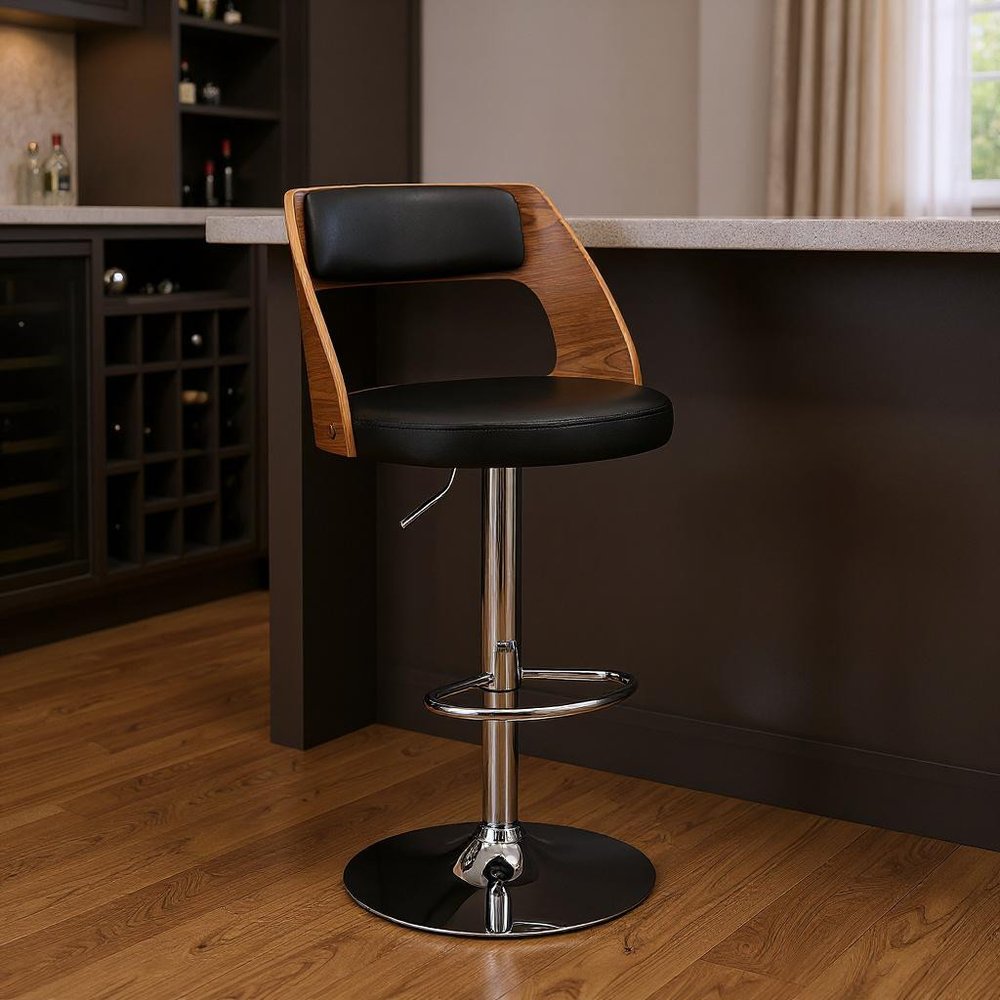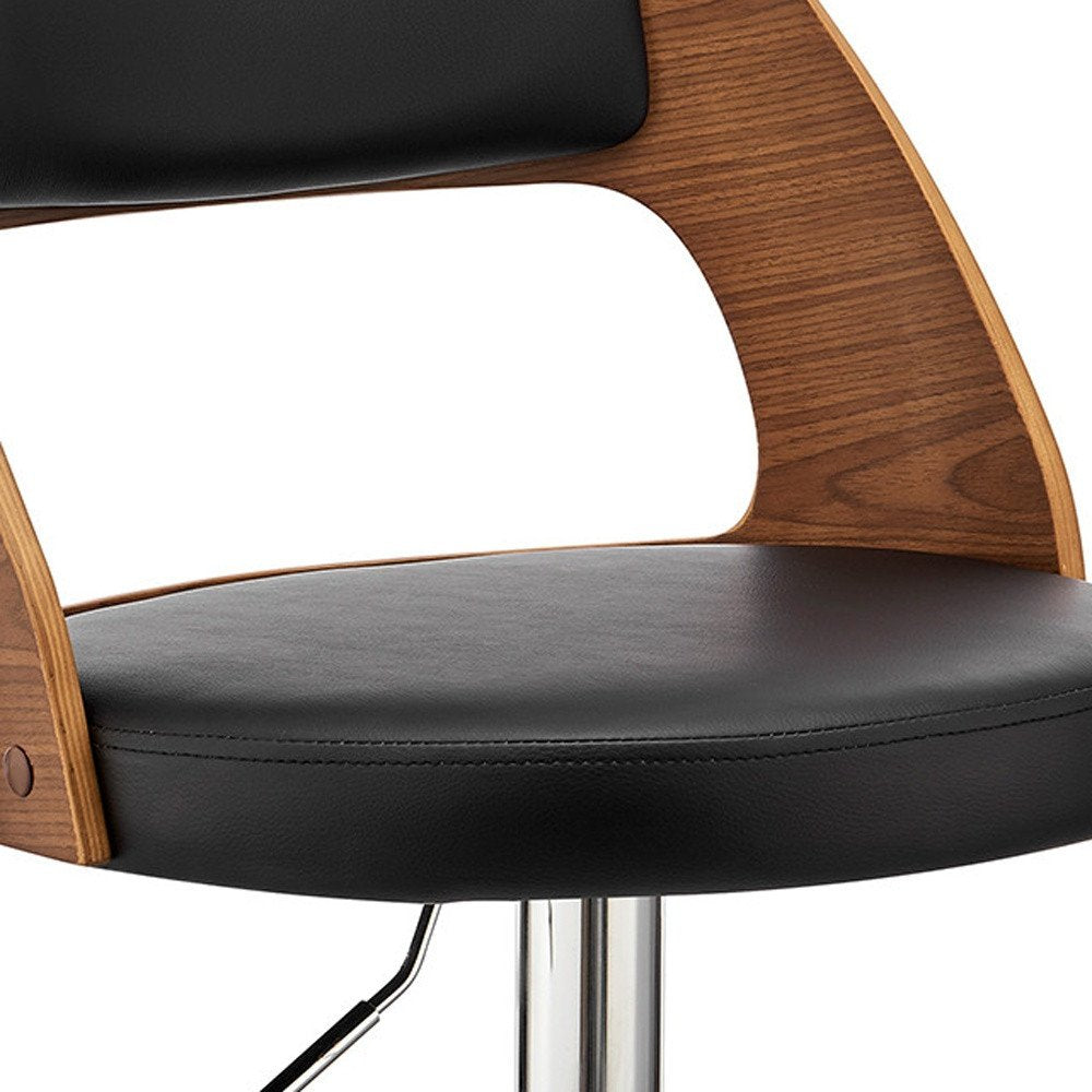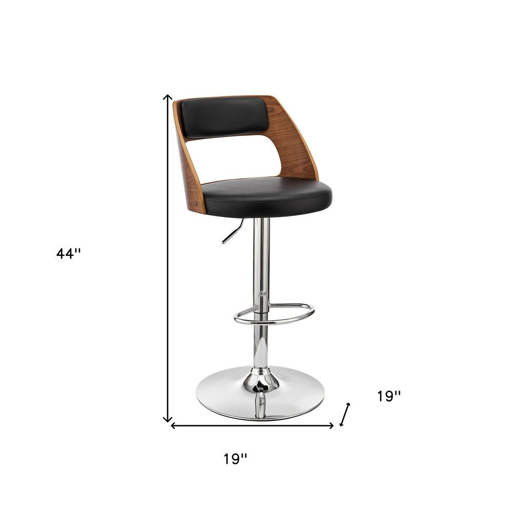 Heighten your seating experience at home with this life-changing Black Upholstered Chrome Base Adjustable Swivel Bar Stool that will outshine all other accents in the room. Showcasing sophistication and grace with its simplistic design and elegant black faux leather and wooden accents, this stool is the perfect addition to any home or apartment. It features an ergonomic 360-degree rotatable function with chrome footrest that allows to turn to any direction conveniently without moving. The stool also has an adjustable height feature with seamless lifting mechanism to adjust to the perfect height until you feel super comfortable, secure and satisfied. The seat is super plush and padded with high-density foam to make sure you feel incredible snug and comfy for as long as you sit. Bring home this stunning chic adjustable bar stool to spruce up your living room, home bar, office or patio in an instant. 44” x 19” x 19”