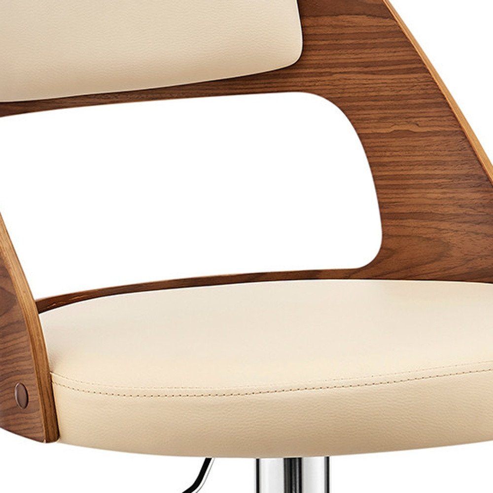 25" Cream And Silver Iron Swivel Adjustable Height Bar Chair