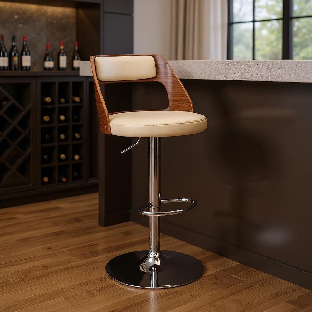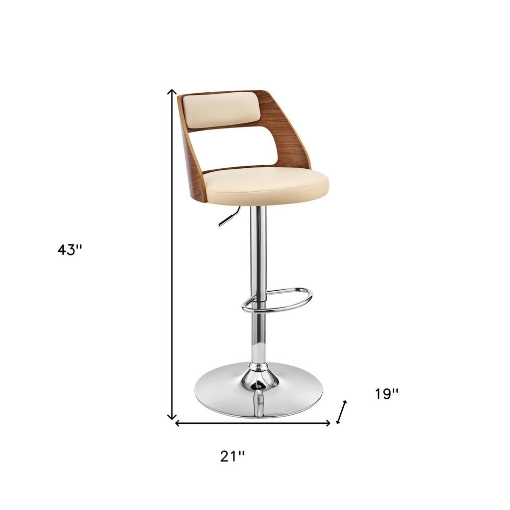 Heighten your seating experience at home with this life-changing Cream Upholstered Chrome Base Adjustable Swivel Bar Stool that will outshine all other accents in the room. Showcasing sophistication and grace with its simplistic design and elegant cream faux leather, this stool is the perfect addition to any home or apartment. It features an ergonomic 360-degree rotatable function with chrome footrest that allows to turn to any direction conveniently without moving. The stool also has an adjustable height feature with seamless lifting mechanism to adjust to the perfect height until you feel super comfortable, secure and satisfied. The seat is super plush and padded with high-density foam to make sure you feel incredible snug and comfy for as long as you sit. Bring home this stunning chic adjustable bar stool to spruce up your living room, home bar, office or patio in an instant. 43” x 19” x 21”