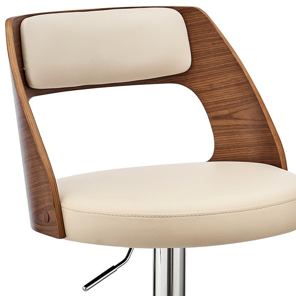 25" Cream And Silver Iron Swivel Adjustable Height Bar Chair