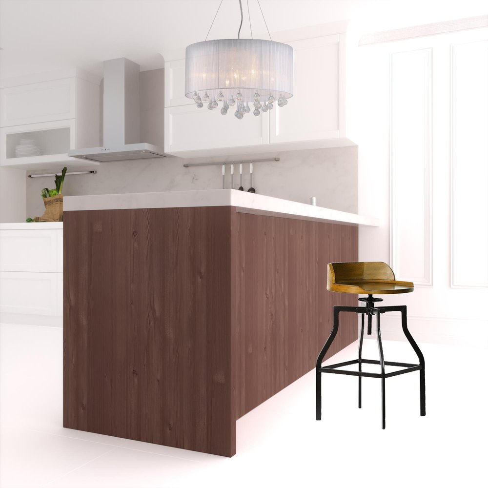 The perfect way to add some extra seating in your home, this 29" chestnut steel swivel backless adjustable height bar chair with footrest will elevate the look and vibe of your room. The base of this stool is made from steel in a black color that is a nice contrast to the chestnut solid wood seat. A backless mixed with a bucket shaped seat makes this chair both comfortable and fashionable. Designed with a footrest for comfort and convenience. 29.25" H x 17" W x 16.25" D