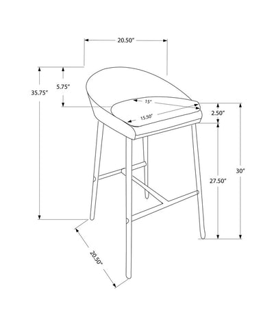 Set of Two 30" Gray Faux Leather and Steel Bar Height Bar Chairs