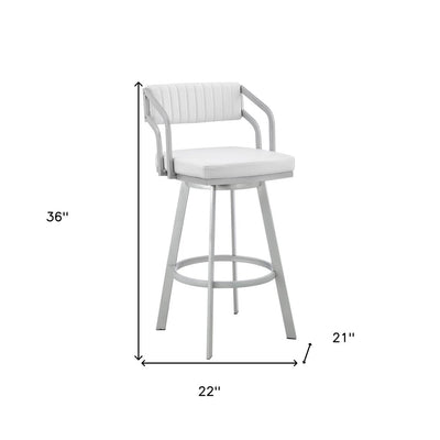 26" White And Silver Iron Swivel Low Back Counter Height Bar Chair