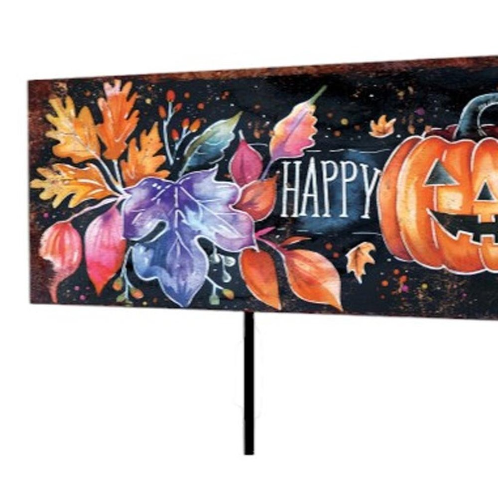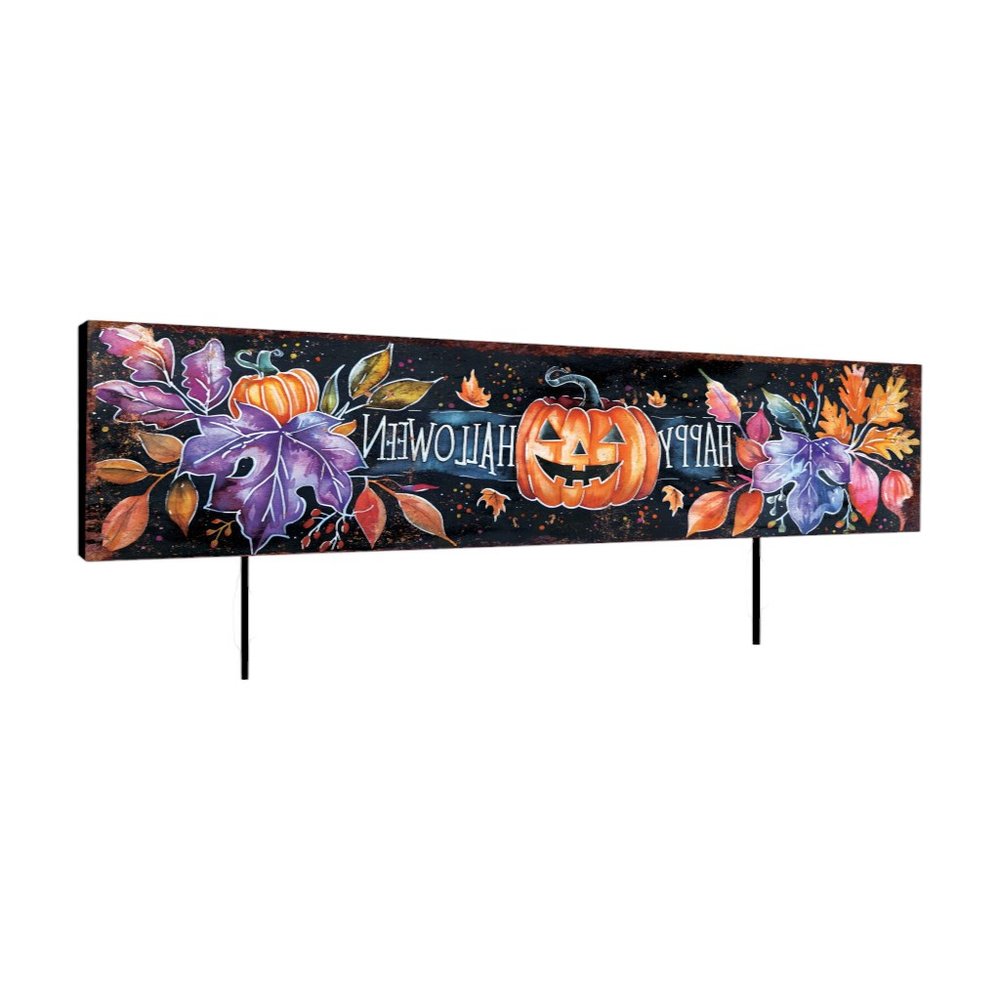 The 10-inch black and orange halloween pumpkin solid wood garden stake adds a festive touch to your outdoor space. Crafted from durable solid wood, this garden stake is designed to withstand the elements while enhancing your seasonal decor. The traditional style features vibrant black and orange colors that evoke the spirit of halloween, making it an eye-catching accent for your yard or garden. Perfect for welcoming trick-or-treaters or simply celebrating the holiday season, this accessory serves as a charming focal point among your plants or pathways. Easily positioned wherever you desire, it combines practicality with festive flair to elevate your outdoor atmosphere. 10-inch h x 36-inch w x 1-inch d.