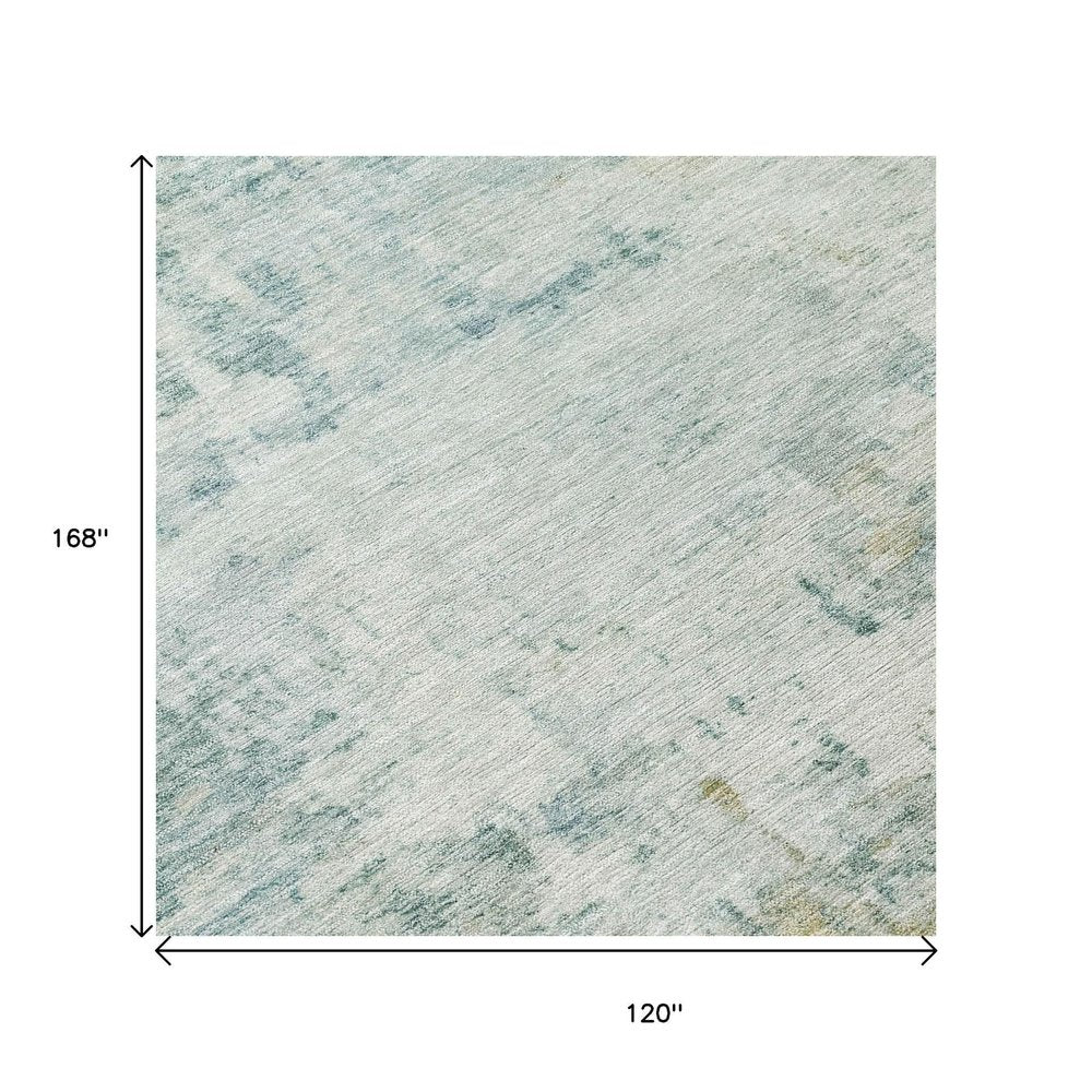 10' X 14' Aqua And Ivory Abstract Washable Indoor Outdoor Area Rug