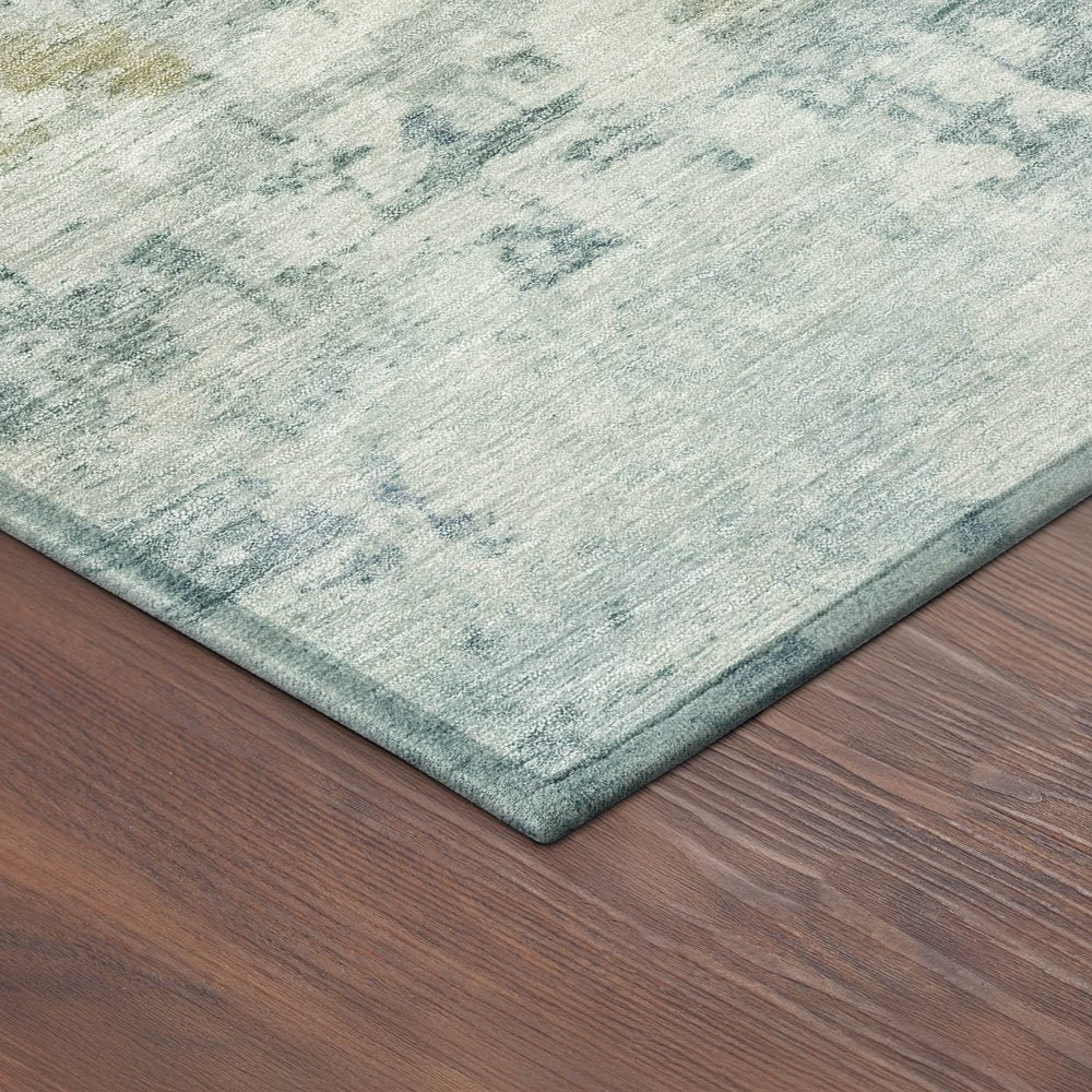 10' X 14' Green And Blue Abstract Washable Indoor Outdoor Area Rug