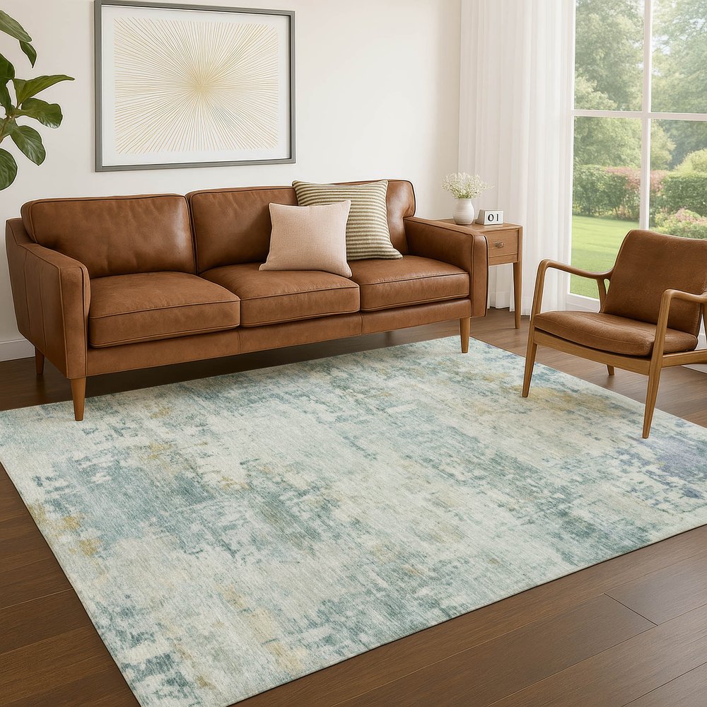 More from 10' X 14' Aqua And Ivory Abstract Washable Indoor Outdoor Area Rug Collection