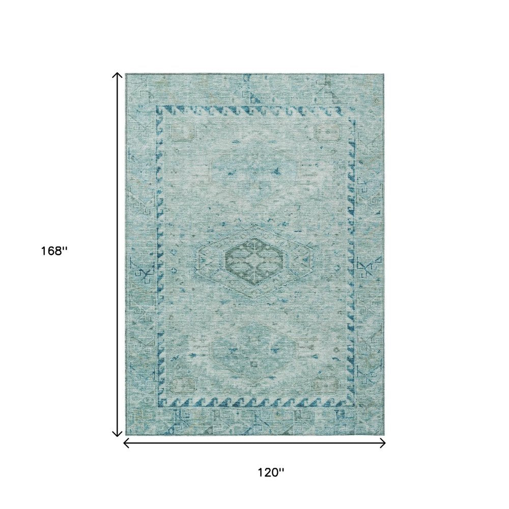 10' X 14' Aqua And Teal Blue Medallion Washable Indoor Outdoor Area Rug