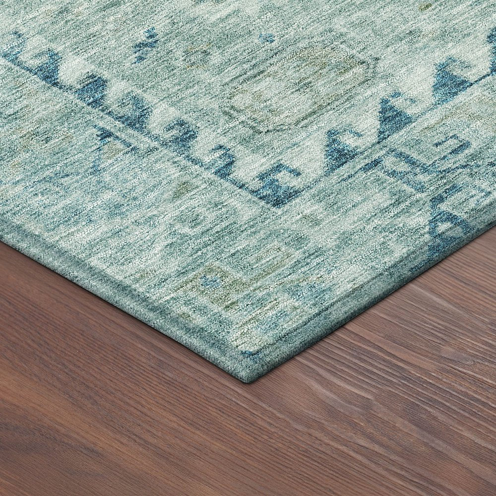 Add some artistry to your room with this 10-foot x 14-foot aqua and teal blue medallion washable indoor outdoor area rug. This rectangle shaped rug features a medallion design that will work well both indoors or out. A classic shape marries with good looking design for your living room, hall, bedroom, porch, patio, or poolside. Ideal for outdoor spaces or high traffic areas with kids and pets, this rug is made from heavy duty polyester that is stain resistant to help repel water, dirt, and stains. Makes a great way to dress up your patio, porch, or poolside, but also works well as a durable and easy to maintain option in the kitchen, family room, or mudroom. 120.00-inch h x 168.00-inch w x 0.19-inch d.