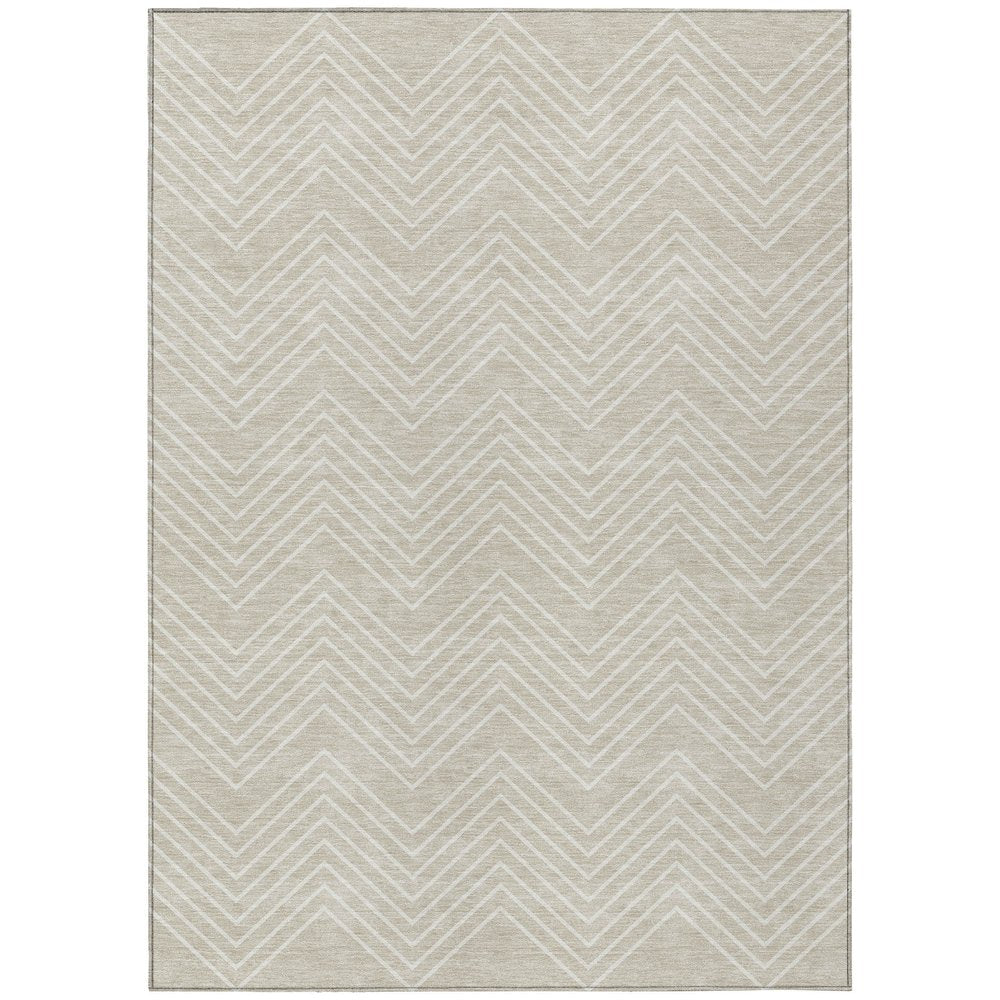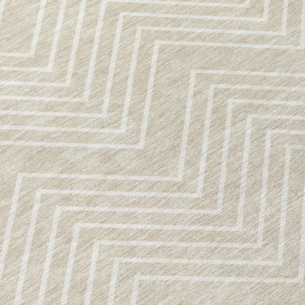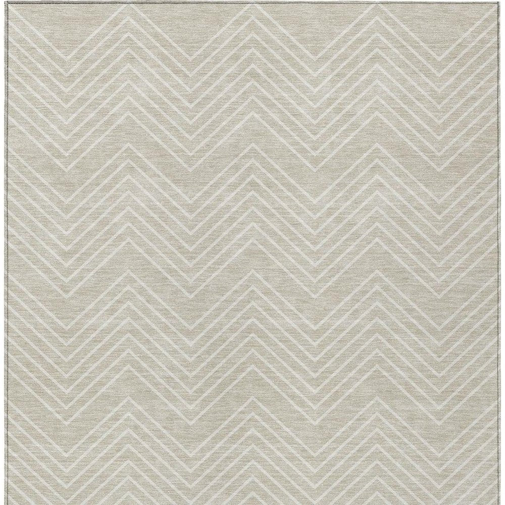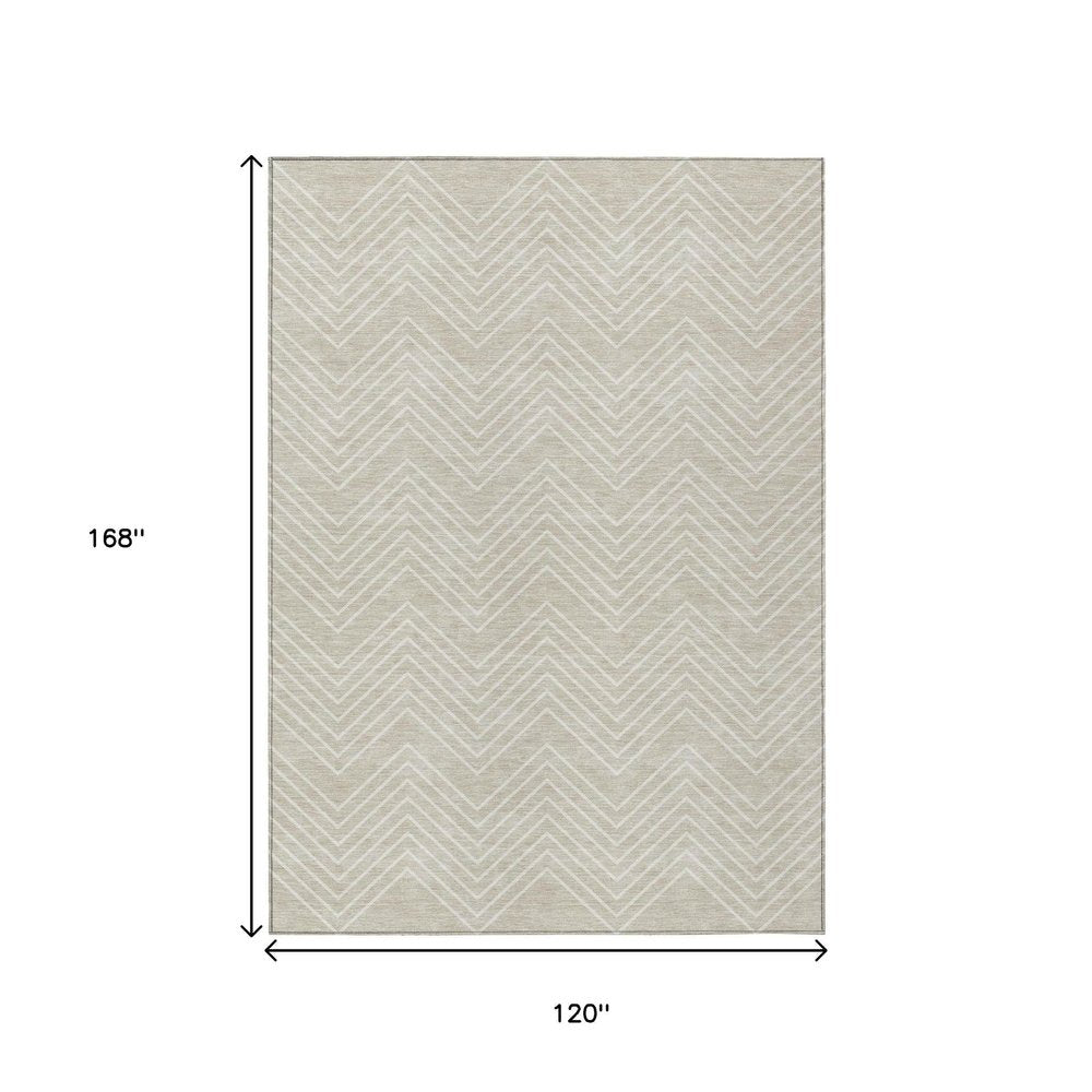 10' X 14' Beige And Ivory Geometric Washable Indoor Outdoor Area Rug