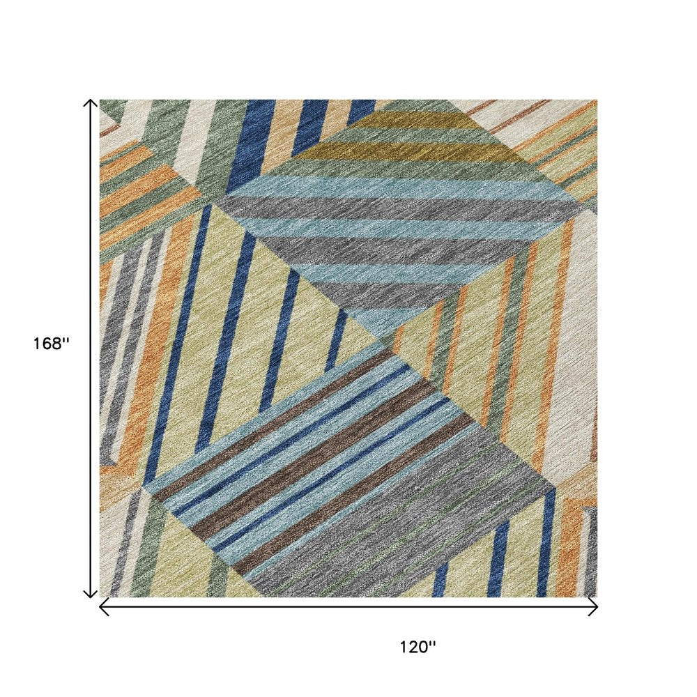 10' X 14' Green And Blue Abstract Washable Indoor Outdoor Area Rug
