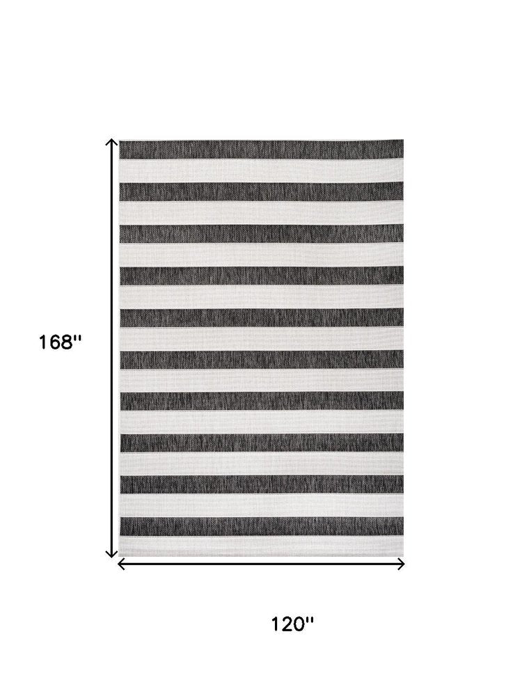 10' X 14' Black And Cream Striped Indoor Outdoor Area Rug