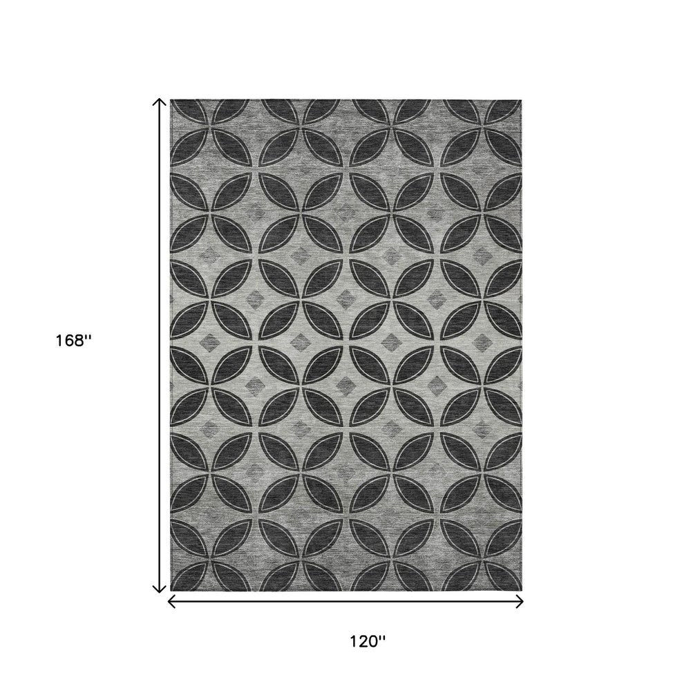 Set an inviting tone in your space with this 10-foot x 14-foot black and ivory geometric washable indoor outdoor area rug. This rectangle shaped rug features a geometric design that will work well both indoors or out. A classic shape marries with good looking design for your living room, hall, bedroom, porch, patio, or poolside. Ideal for outdoor spaces or high traffic areas with kids and pets, this rug is made from heavy duty polyester that is stain resistant to help repel water, dirt, and stains. Versatile in use, durable, and easy to maintain, this rug is an ideal solution to add a decorative and inviting touch to your indoor or outdoor space. 120.00-inch h x 168.00-inch w x 0.19-inch d.
