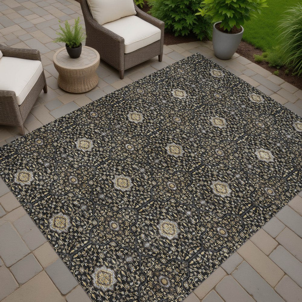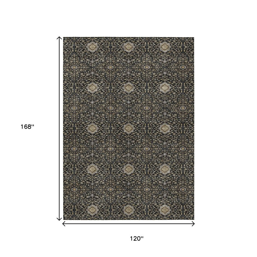 Add some artistry to your room with this 10-foot x 14-foot black brown and gray oriental washable indoor outdoor area rug. This rectangle shaped rug features a oriental design that will work well both indoors or out. A classic shape marries with good looking design for your living room, hall, bedroom, porch, patio, or poolside. Ideal for outdoor spaces or high traffic areas with kids and pets, this rug is made from heavy duty polyester that is stain resistant to help repel water, dirt, and stains. Versatile in use, durable, and easy to maintain, this rug is an ideal solution to add a decorative and inviting touch to your indoor or outdoor space. 120.00-inch h x 168.00-inch w x 0.19-inch d.
