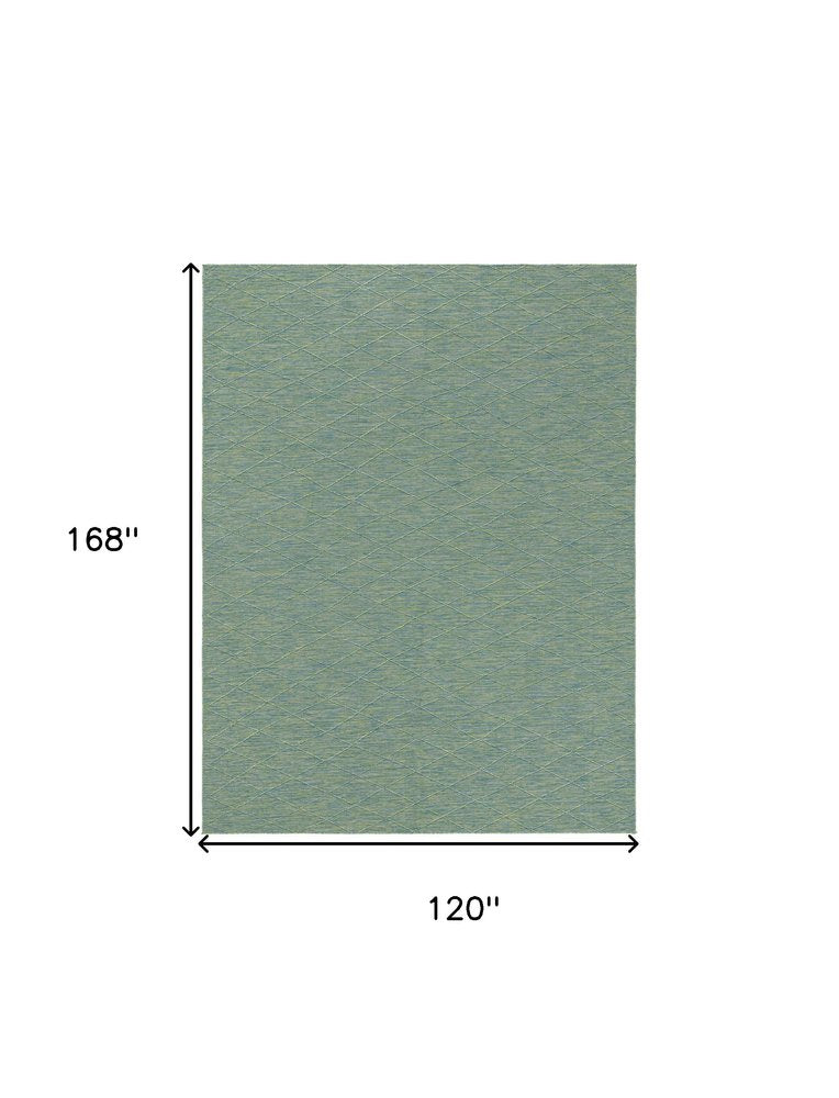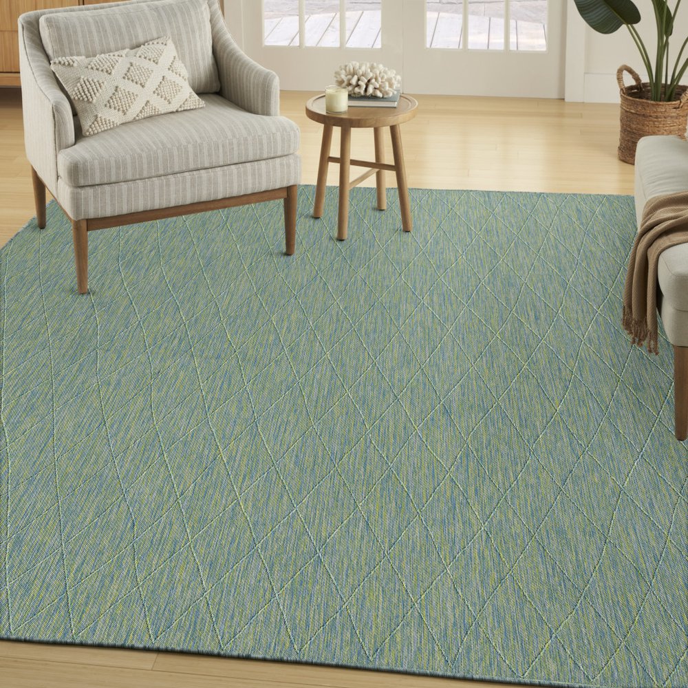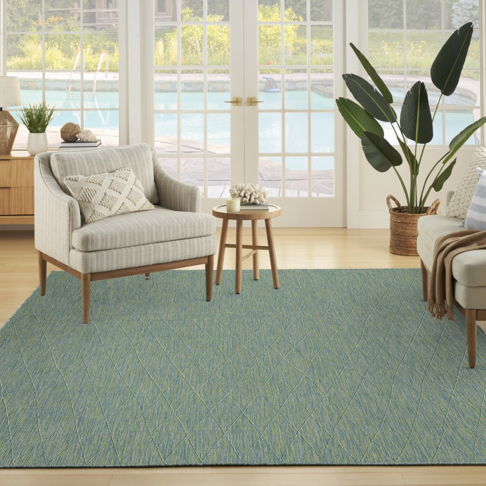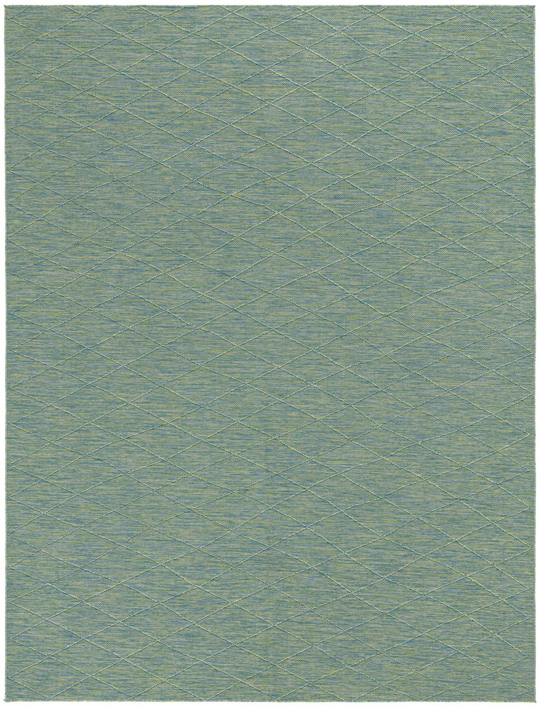 Add some artistry to your room with this 10-foot x 14-foot blue and green geometric indoor outdoor area rug. This rectangle shaped rug features a geometric design that will work well both indoors or out. A classic shape marries with good looking design for your living room, hall, bedroom, porch, patio, or poolside. Versatile in use, durable, and easy to maintain, this rug is an ideal solution to add a decorative and inviting touch to your indoor or outdoor space. 120-inch h x 168-inch w x 0.38-inch d.