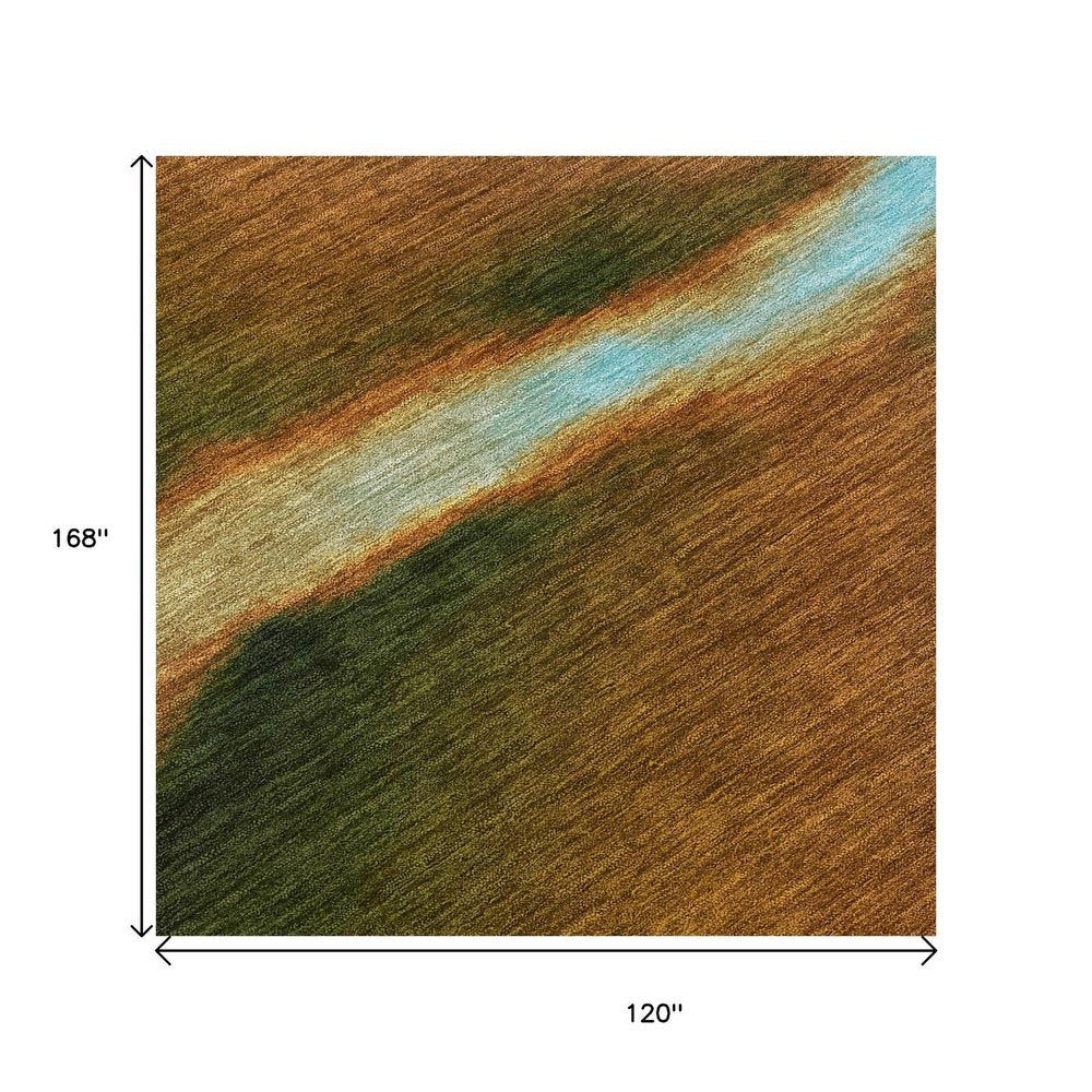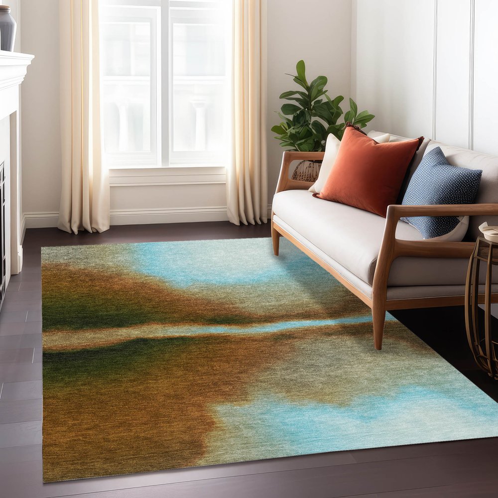 Add great coloration and comfortable texture to your space with this 10-foot x 14-foot blue brown and ivory abstract washable indoor outdoor area rug. This rectangle shaped rug features a abstract design that will work well both indoors or out. A classic shape marries with good looking design for your living room, hall, bedroom, porch, patio, or poolside. Ideal for outdoor spaces or high traffic areas with kids and pets, this rug is made from heavy duty polyester that is stain resistant to help repel water, dirt, and stains. Versatile in use, durable, and easy to maintain, this rug is an ideal solution to add a decorative and inviting touch to your indoor or outdoor space. 120.00-inch h x 168.00-inch w x 0.19-inch d.