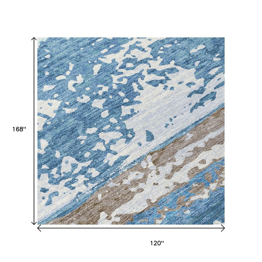 10' X 14' Green And Blue Abstract Washable Indoor Outdoor Area Rug