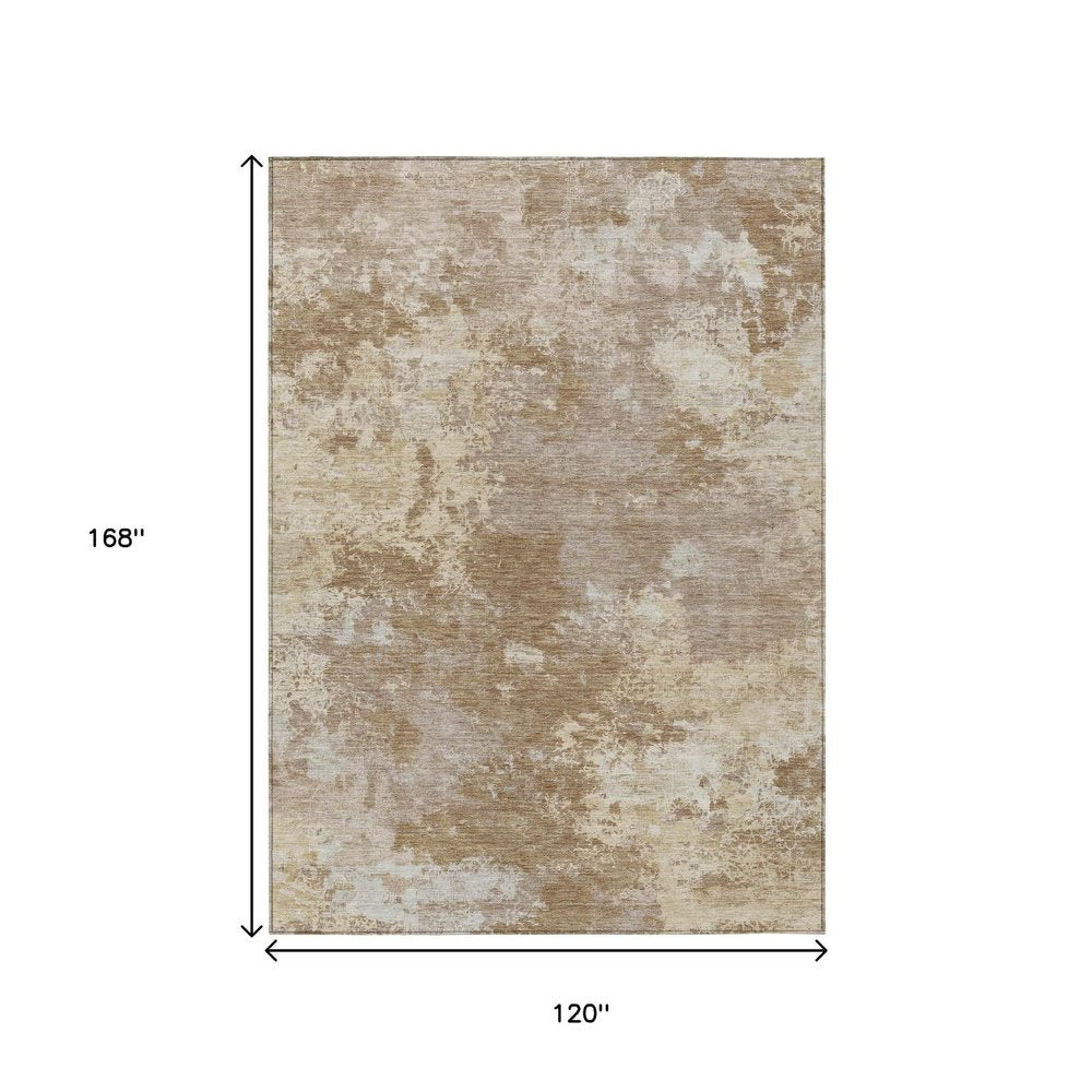 10' X 14' Brown And Beige Abstract Washable Indoor Outdoor Area Rug