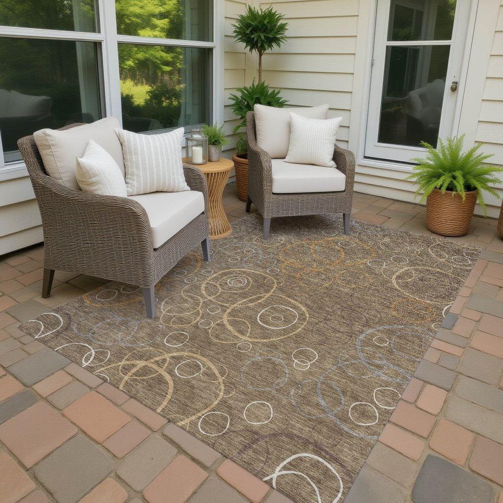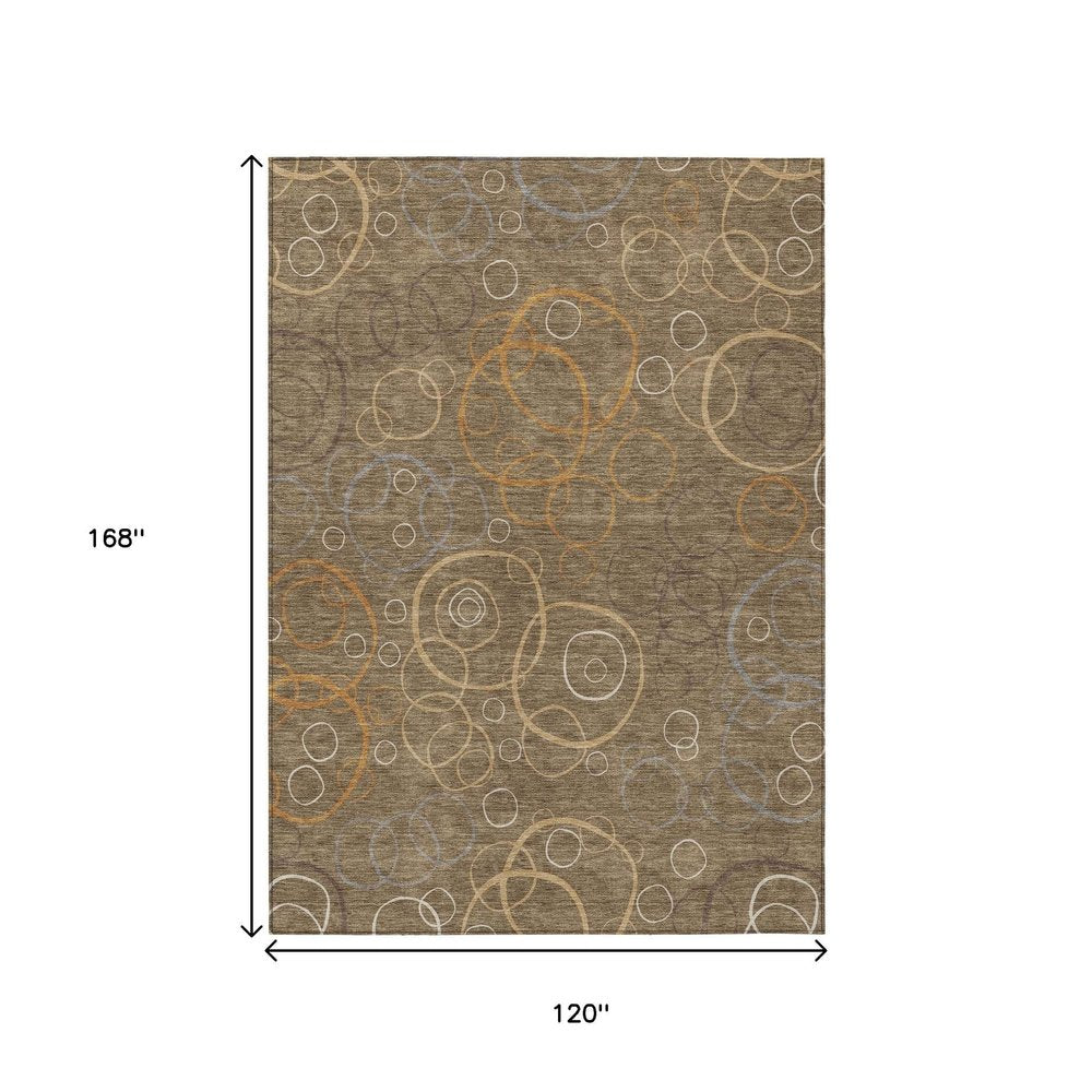 Add great coloration and comfortable texture to your space with this 10-foot x 14-foot brown copper and ivory geometric washable indoor outdoor area rug. This rectangle shaped rug features a geometric design that will work well both indoors or out. A classic shape marries with good looking design for your living room, hall, bedroom, porch, patio, or poolside. Ideal for outdoor spaces or high traffic areas with kids and pets, this rug is made from heavy duty polyester that is stain resistant to help repel water, dirt, and stains. Makes a great way to dress up your patio, porch, or poolside, but also works well as a durable and easy to maintain option in the kitchen, family room, or mudroom. 120.00-inch h x 168.00-inch w x 0.19-inch d.