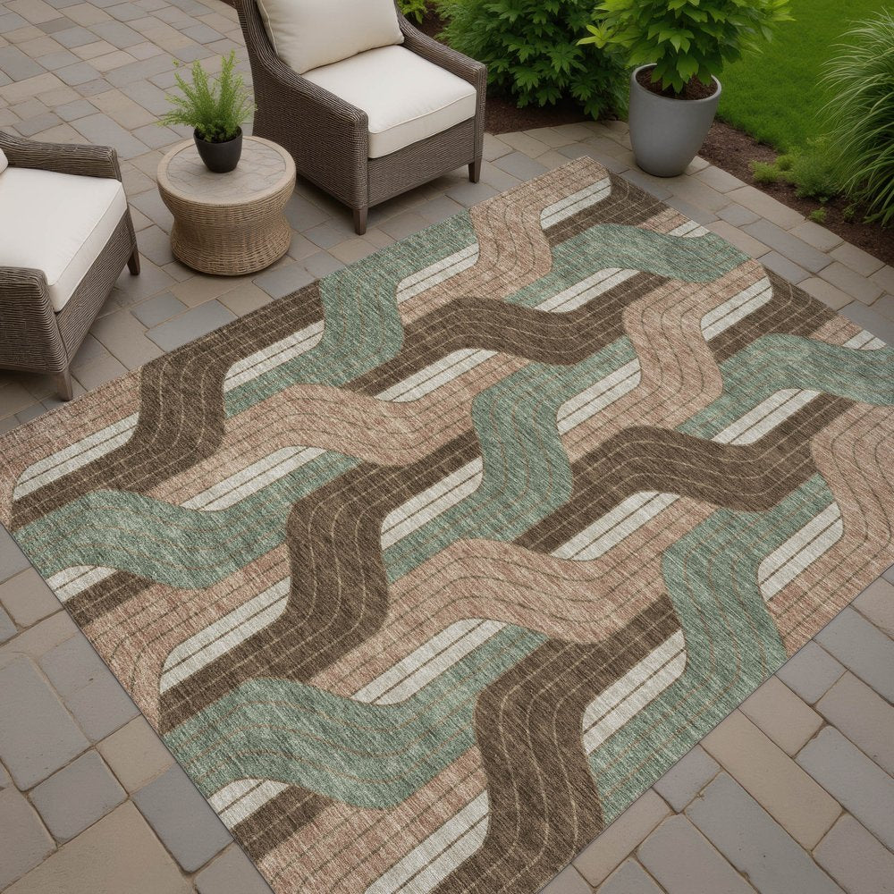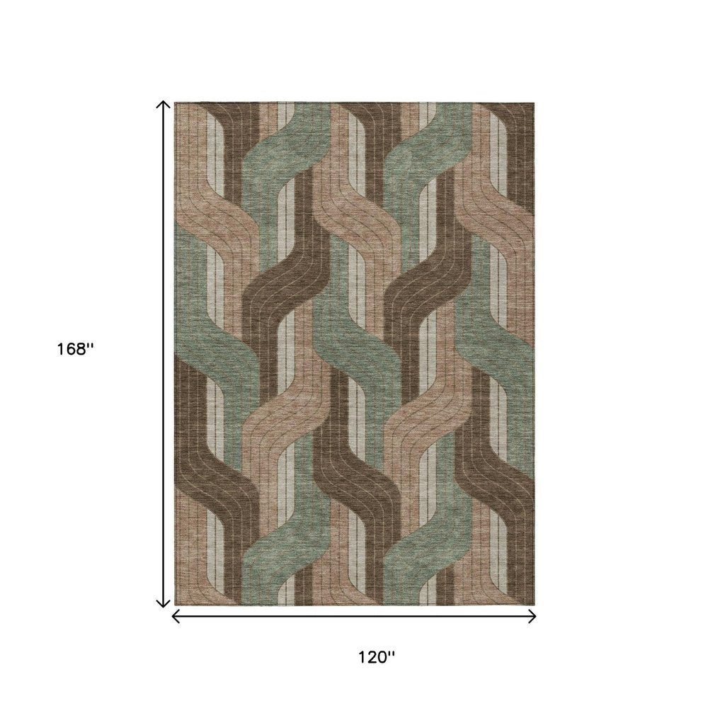 Set an inviting tone in your space with this 10-foot x 14-foot chocolate beige and taupe striped washable indoor outdoor area rug. This rectangle shaped rug features a striped design that will work well both indoors or out. A classic shape marries with good looking design for your living room, hall, bedroom, porch, patio, or poolside. Ideal for outdoor spaces or high traffic areas with kids and pets, this rug is made from heavy duty polyester that is stain resistant to help repel water, dirt, and stains. Makes a great way to dress up your patio, porch, or poolside, but also works well as a durable and easy to maintain option in the kitchen, family room, or mudroom. 120.00-inch h x 168.00-inch w x 0.19-inch d.