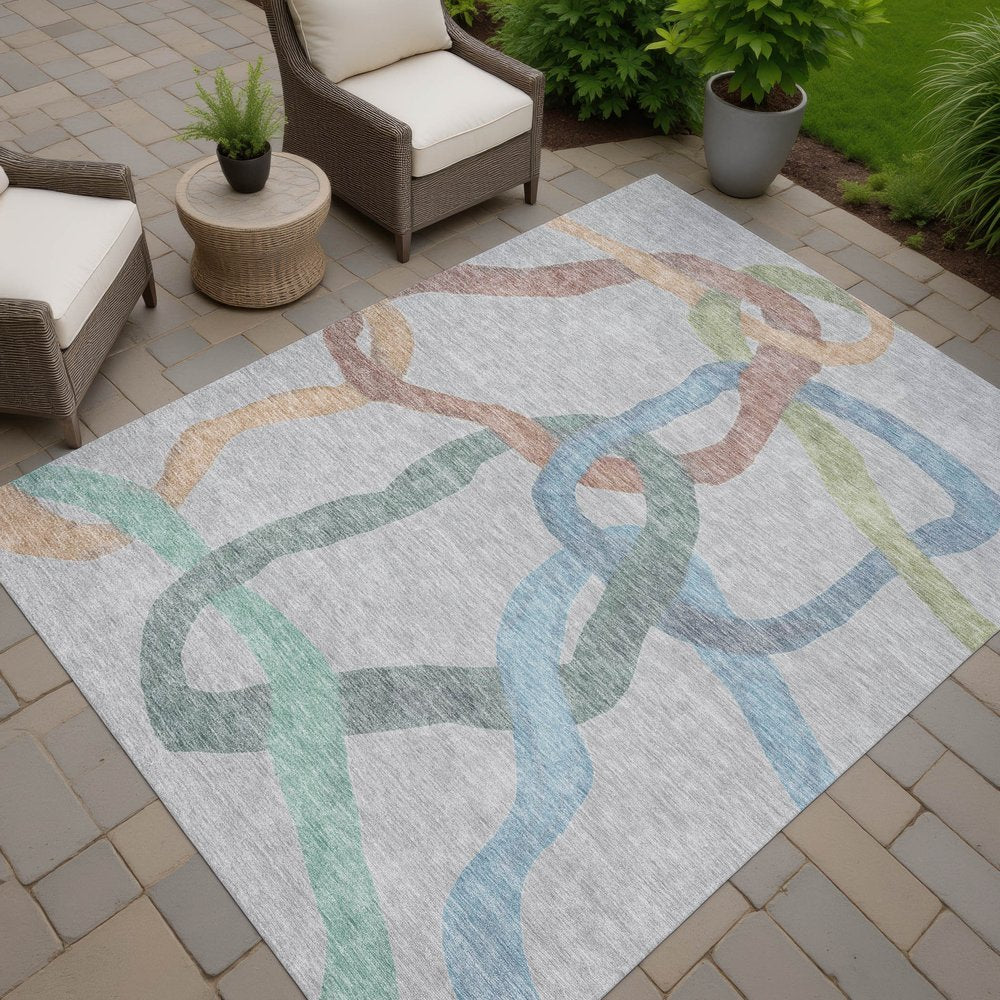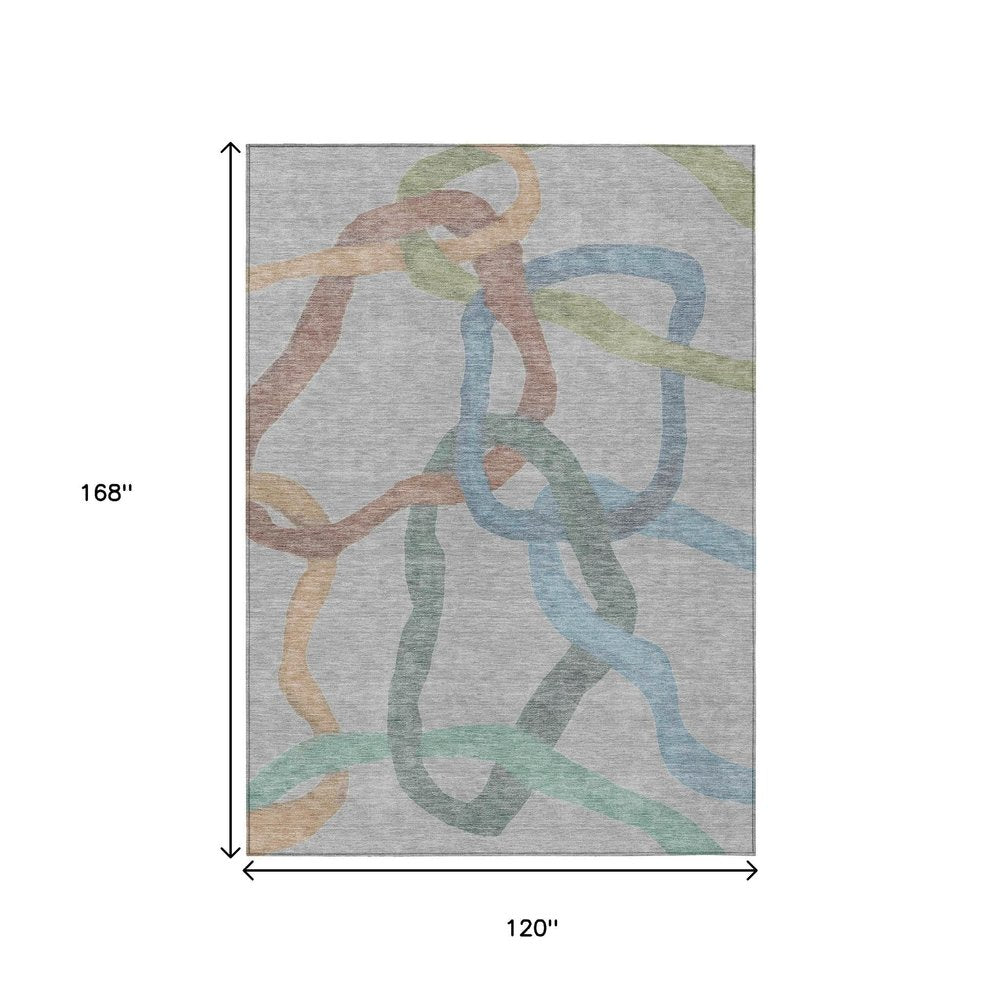 Set an inviting tone in your space with this 10-foot x 14-foot gray blue and copper abstract washable indoor outdoor area rug. This rectangle shaped rug features a abstract design that will work well both indoors or out. A classic shape marries with good looking design for your living room, hall, bedroom, porch, patio, or poolside. Ideal for outdoor spaces or high traffic areas with kids and pets, this rug is made from heavy duty polyester that is stain resistant to help repel water, dirt, and stains. Versatile in use, durable, and easy to maintain, this rug is an ideal solution to add a decorative and inviting touch to your indoor or outdoor space. 120.00-inch h x 168.00-inch w x 0.19-inch d.