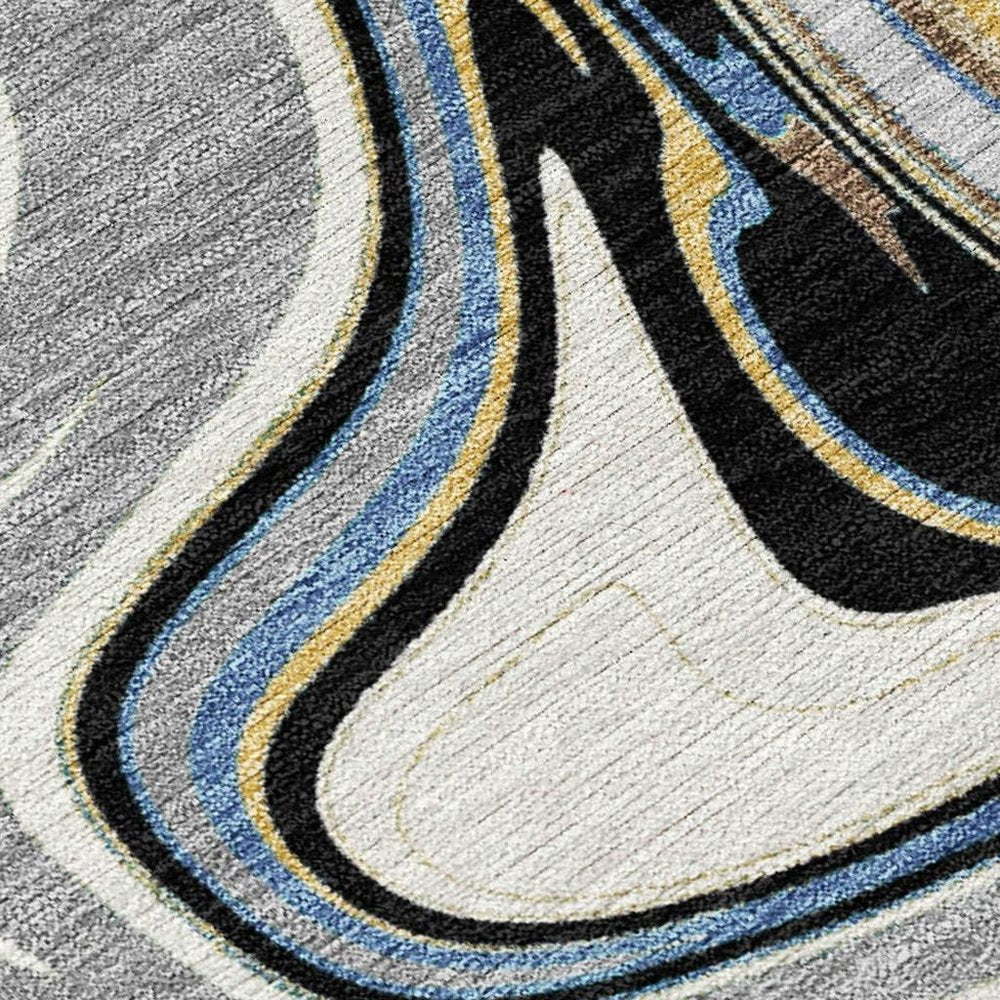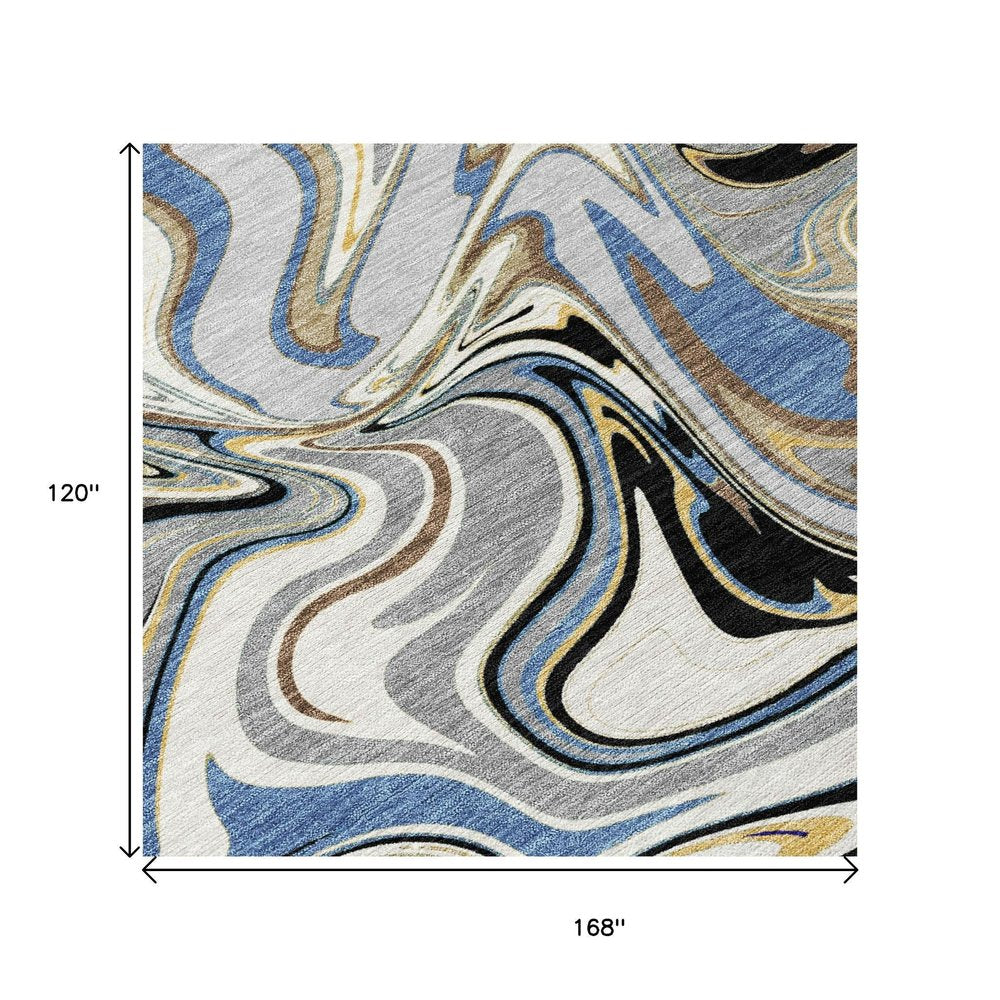 More from 10' X 14' Gray Gold And Blue Abstract Washable Indoor Outdoor Area Rug Collection