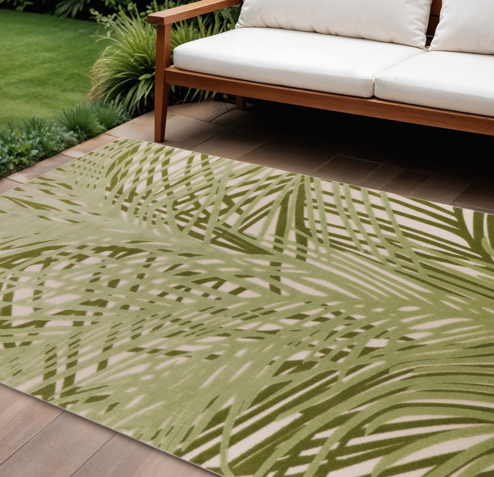 More from 10' X 14' Ivory And Green Palm Leaf Indoor Outdoor Area Rug Collection
