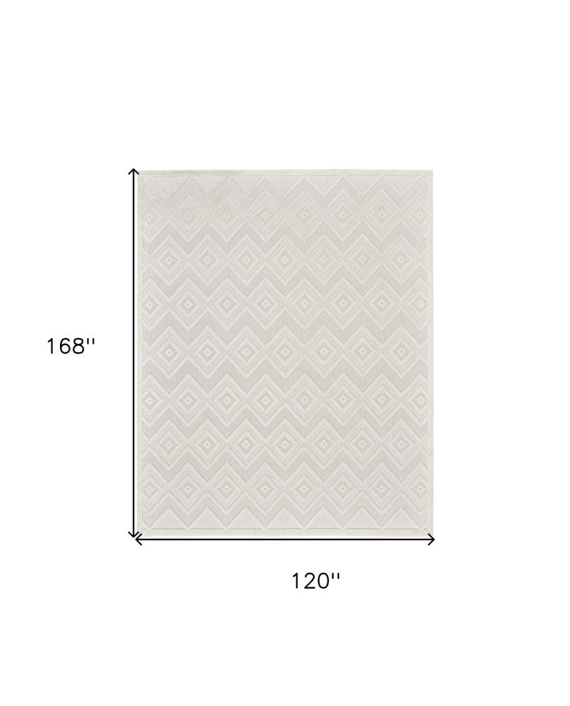 10' X 14' Ivory And White Geometric Indoor Outdoor Area Rug