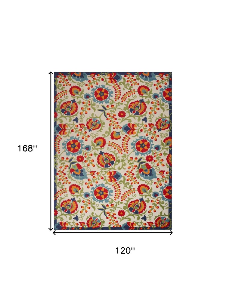 Set an inviting tone in your space with this 10-foot x 14-foot ivory blue and orange indoor outdoor area rug. Makes a great way to dress up your patio, porch, or poolside, but also works well as a durable and easy to maintain option in the kitchen, family room, or mudroom. This machine-made rug offers exceptional durability while enhancing your outdoor aesthetics. The rectangle shape complements various spaces effortlessly, adding a stylish touch to your decor. 120-inch h x 168-inch w x 0.25-inch d.
