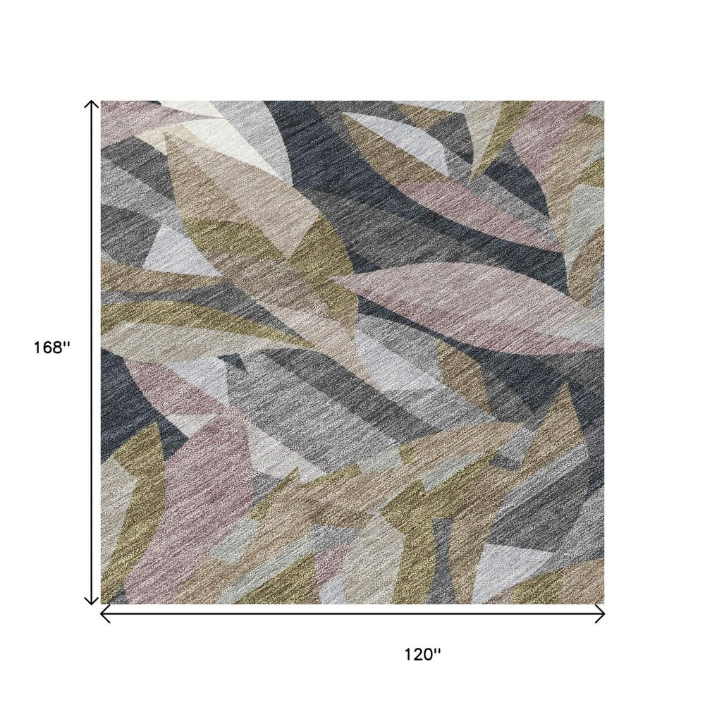 10' X 14' Khaki And Brown Floral Washable Indoor Outdoor Area Rug