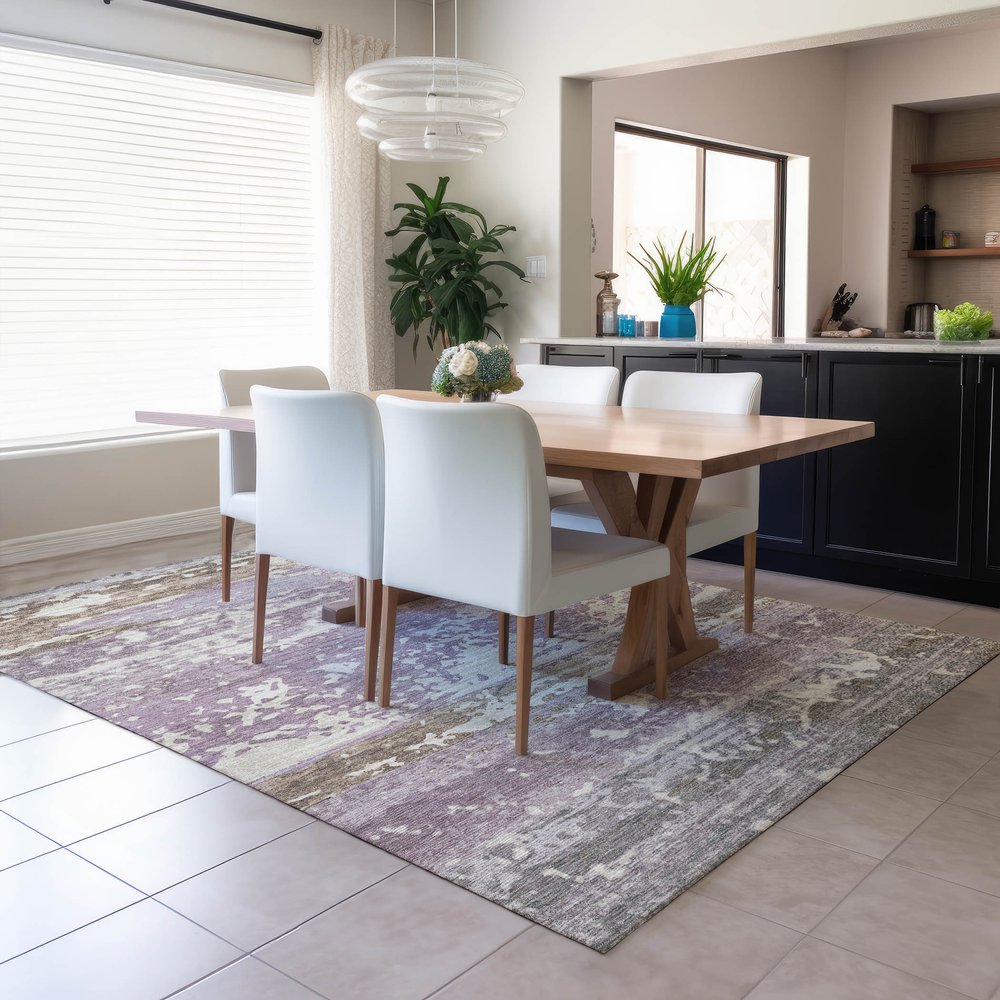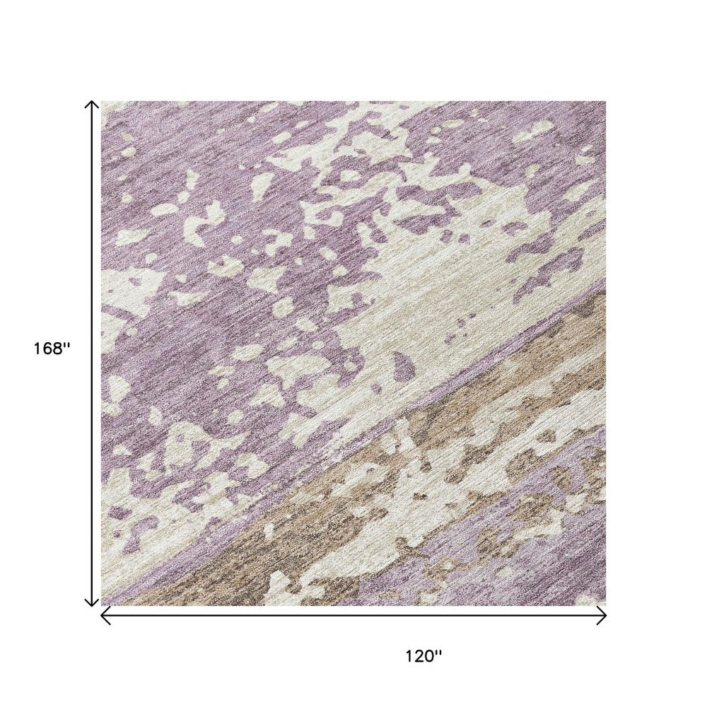 Add some artistry to your room with this 10-foot x 14-foot lavender ivory and beige striped washable indoor outdoor area rug. This rectangle shaped rug features a striped design that will work well both indoors or out. A classic shape marries with good looking design for your living room, hall, bedroom, porch, patio, or poolside. Ideal for outdoor spaces or high traffic areas with kids and pets, this rug is made from heavy duty polyester that is stain resistant to help repel water, dirt, and stains. Makes a great way to dress up your patio, porch, or poolside, but also works well as a durable and easy to maintain option in the kitchen, family room, or mudroom. 120.00-inch h x 168.00-inch w x 0.19-inch d.