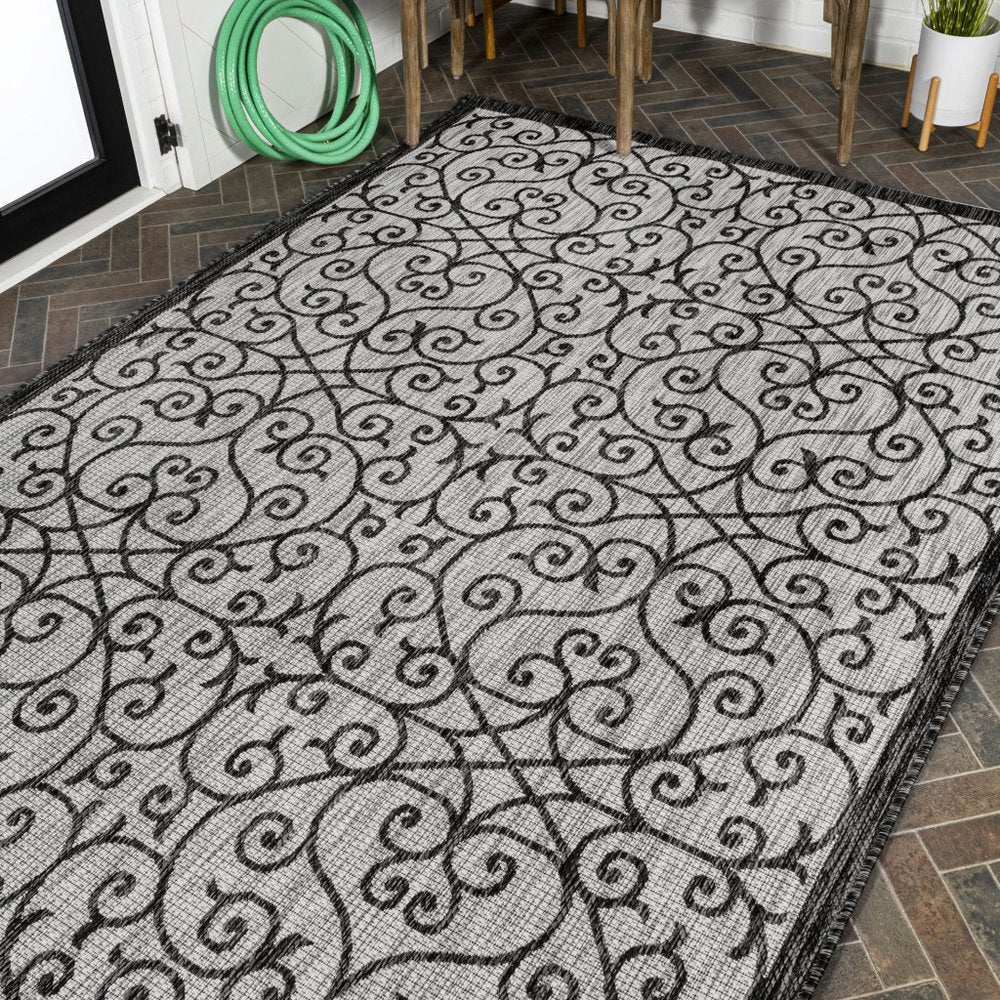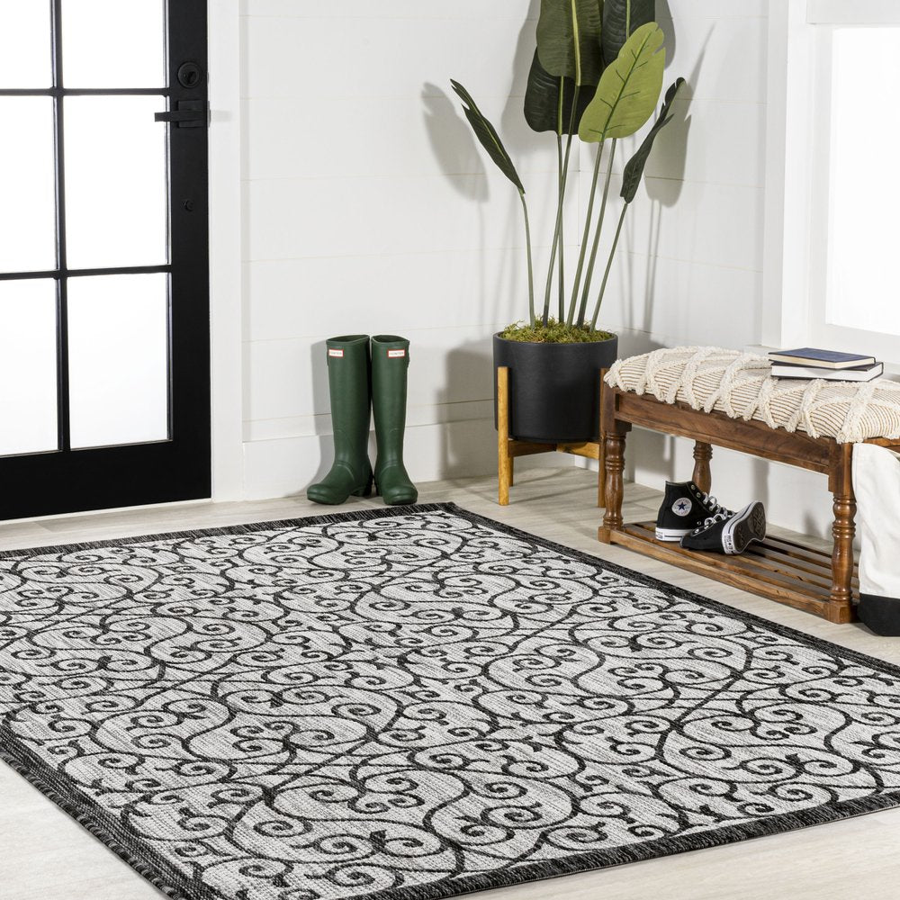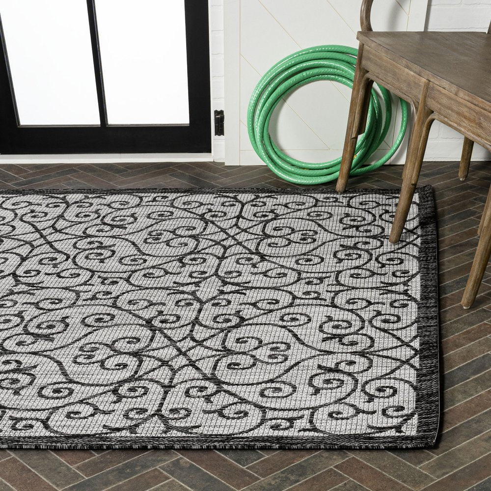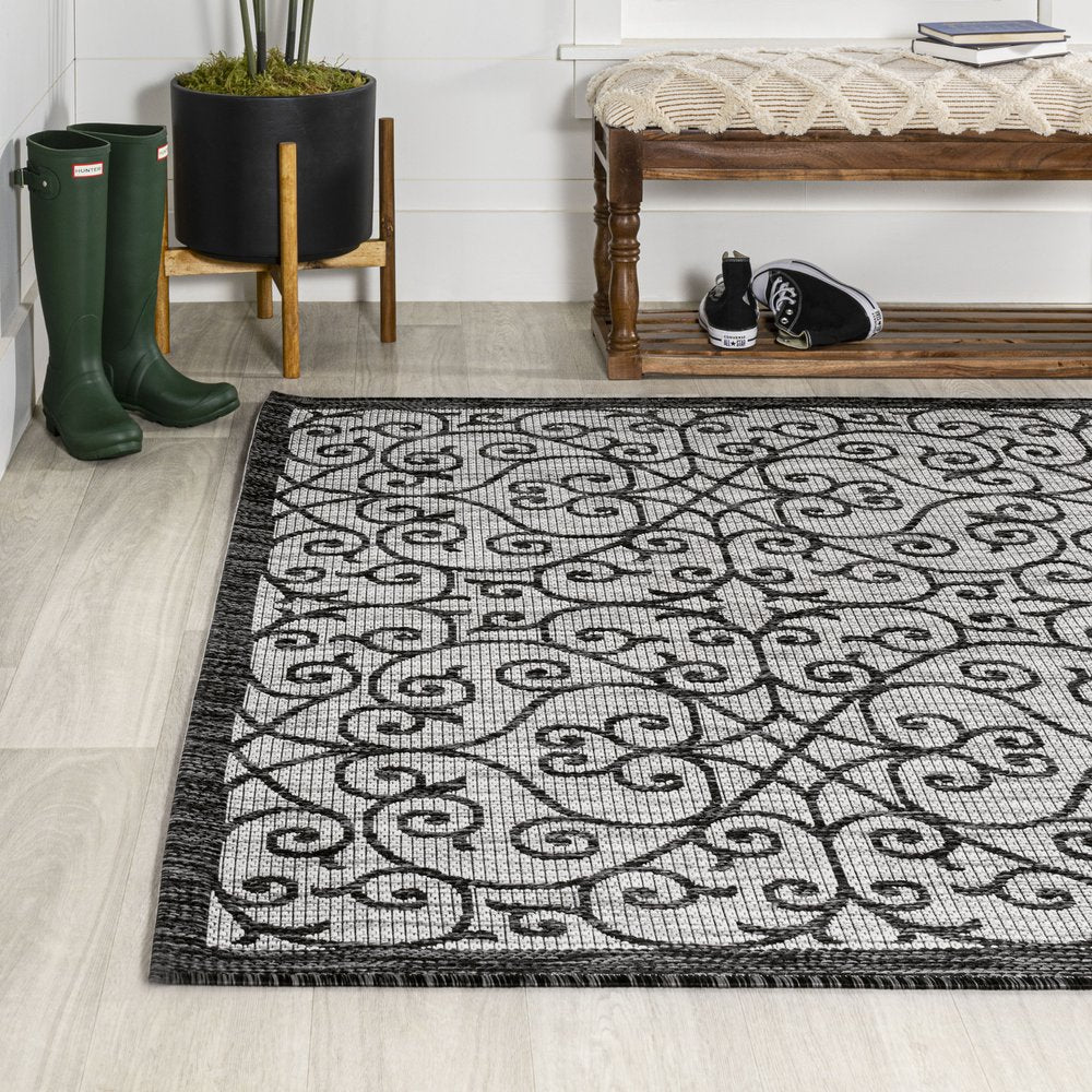Add great coloration and comfortable texture to your space with this 10-foot x 14-foot light gray and black geometric indoor outdoor area rug. This rectangle shaped rug features a geometric design that will work well both indoors or out. A classic shape marries with good looking design for your living room, hall, bedroom, porch, patio, or poolside. Makes a great way to dress up your patio, porch, or poolside, but also works well as a durable and easy to maintain option in the kitchen, family room, or mudroom. 120.00-inch h x 168.00-inch w x 0.19-inch d.