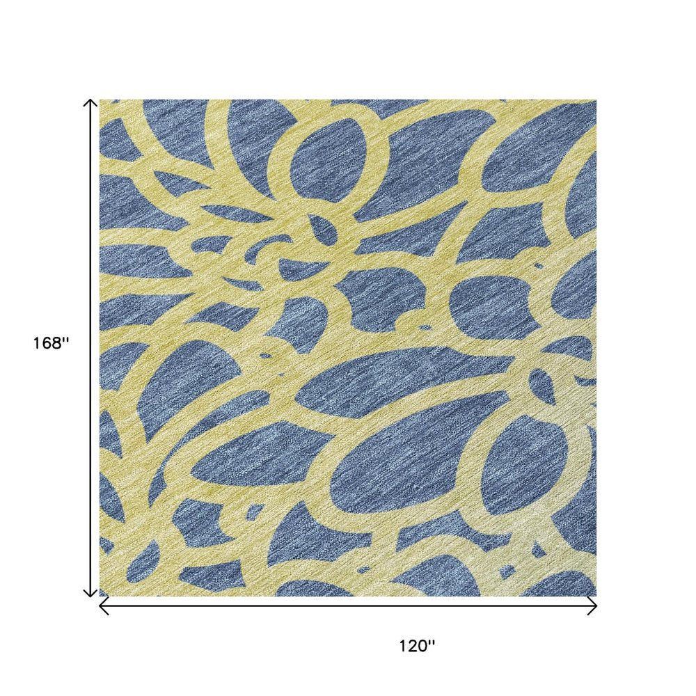 Set an inviting tone in your space with this 10-foot x 14-foot navy blue and gold botanical leaves washable indoor outdoor area rug. This rectangle shaped rug features a botanical leaves design that will work well both indoors or out. A classic shape marries with good looking design for your living room, hall, bedroom, porch, patio, or poolside. Ideal for outdoor spaces or high traffic areas with kids and pets, this rug is made from heavy duty polyester that is stain resistant to help repel water, dirt, and stains. Makes a great way to dress up your patio, porch, or poolside, but also works well as a durable and easy to maintain option in the kitchen, family room, or mudroom. 120.00-inch h x 168.00-inch w x 0.19-inch d.