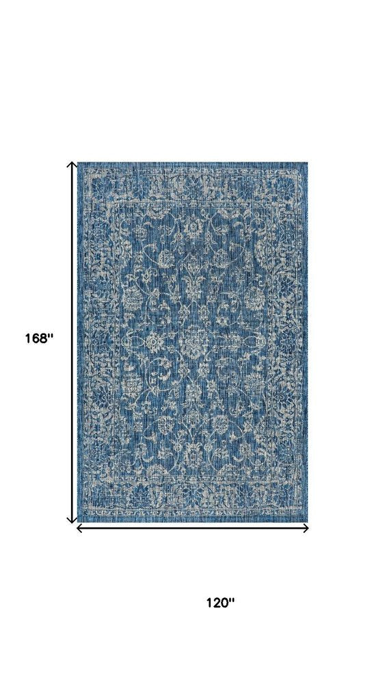 10' X 14' Navy Blue And Gray Medallion Indoor Outdoor Area Rug