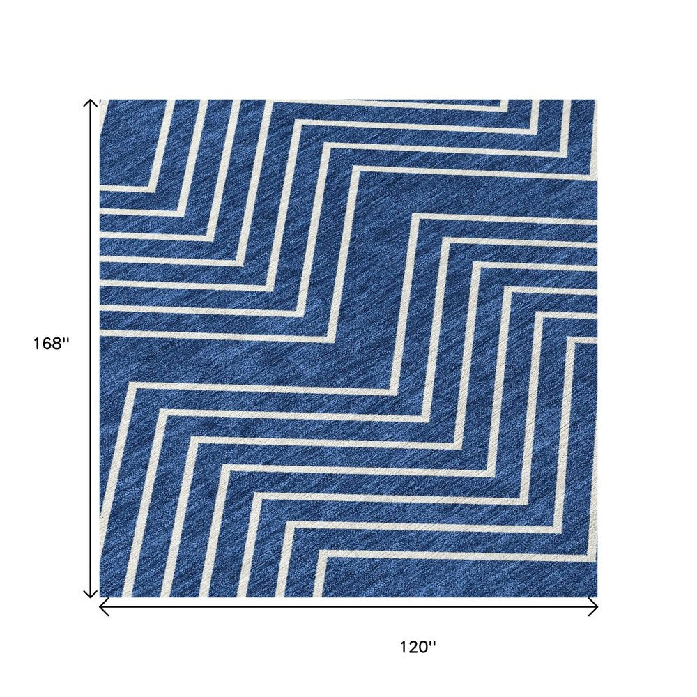 More from 10' X 14' Navy Blue And Ivory Geometric Washable Indoor Outdoor Area Rug Collection