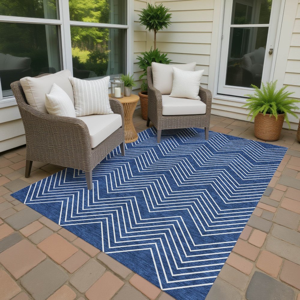 Add great coloration and comfortable texture to your space with this 10-foot x 14-foot navy blue and ivory geometric washable indoor outdoor area rug. This rectangle shaped rug features a geometric design that will work well both indoors or out. A classic shape marries with good looking design for your living room, hall, bedroom, porch, patio, or poolside. Ideal for outdoor spaces or high traffic areas with kids and pets, this rug is made from heavy duty polyester that is stain resistant to help repel water, dirt, and stains. Makes a great way to dress up your patio, porch, or poolside, but also works well as a durable and easy to maintain option in the kitchen, family room, or mudroom. 120.00-inch h x 168.00-inch w x 0.19-inch d.