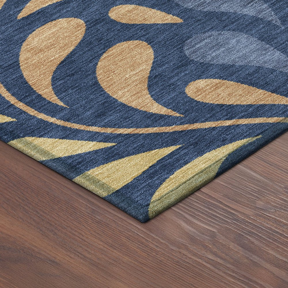 Add some artistry to your room with this 10-foot x 14-foot navy blue copper and gold botanical leaves washable indoor outdoor area rug. This rectangle shaped rug features a botanical leaves design that will work well both indoors or out. A classic shape marries with good looking design for your living room, hall, bedroom, porch, patio, or poolside. Ideal for outdoor spaces or high traffic areas with kids and pets, this rug is made from heavy duty polyester that is stain resistant to help repel water, dirt, and stains. Makes a great way to dress up your patio, porch, or poolside, but also works well as a durable and easy to maintain option in the kitchen, family room, or mudroom. 120.00-inch h x 168.00-inch w x 0.19-inch d.