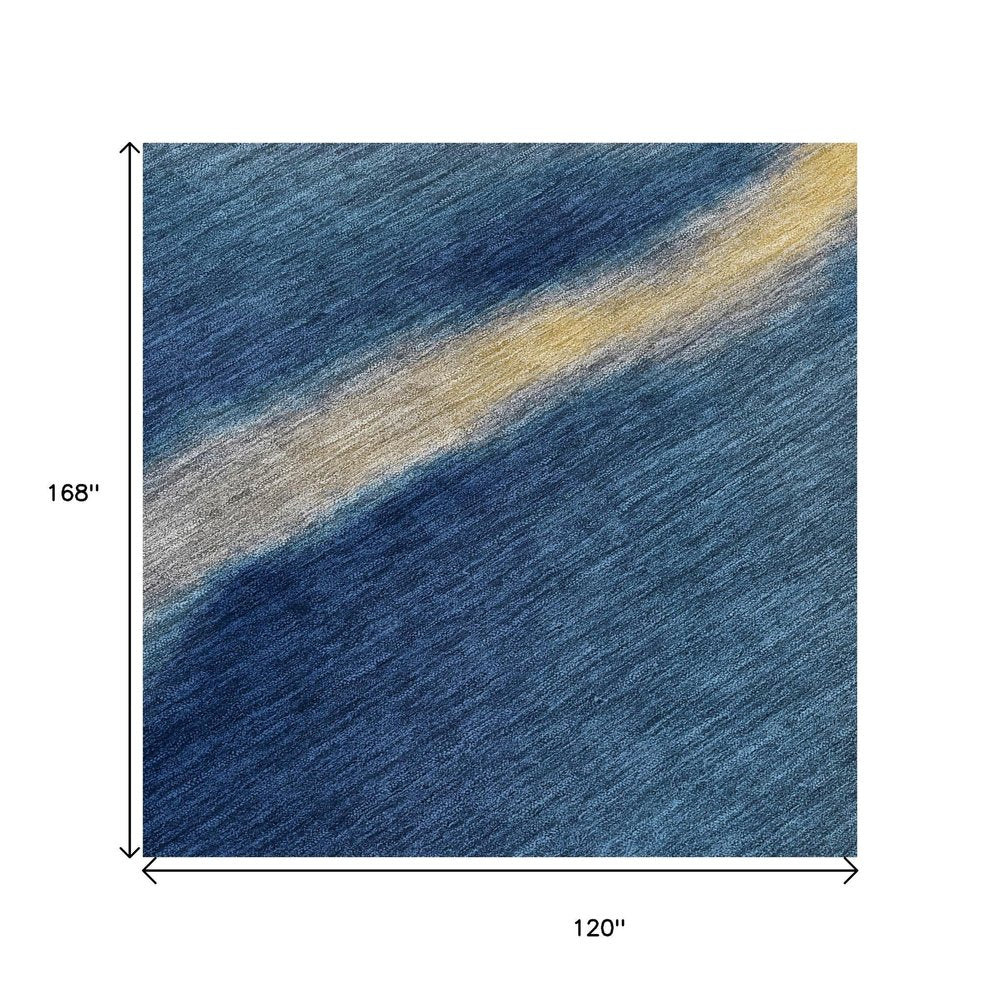Add some artistry to your room with this 10-foot x 14-foot navy blue gold and beige abstract washable indoor outdoor area rug. This rectangle shaped rug features a abstract design that will work well both indoors or out. A classic shape marries with good looking design for your living room, hall, bedroom, porch, patio, or poolside. Ideal for outdoor spaces or high traffic areas with kids and pets, this rug is made from heavy duty polyester that is stain resistant to help repel water, dirt, and stains. Makes a great way to dress up your patio, porch, or poolside, but also works well as a durable and easy to maintain option in the kitchen, family room, or mudroom. 120.00-inch h x 168.00-inch w x 0.19-inch d.