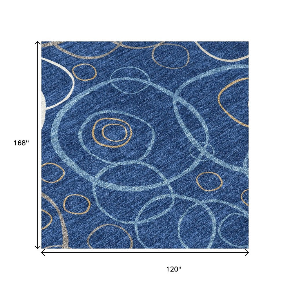 Add some artistry to your room with this 10-foot x 14-foot navy blue ivory and brown geometric washable indoor outdoor area rug. This rectangle shaped rug features a geometric design that will work well both indoors or out. A classic shape marries with good looking design for your living room, hall, bedroom, porch, patio, or poolside. Ideal for outdoor spaces or high traffic areas with kids and pets, this rug is made from heavy duty polyester that is stain resistant to help repel water, dirt, and stains. Makes a great way to dress up your patio, porch, or poolside, but also works well as a durable and easy to maintain option in the kitchen, family room, or mudroom. 120.00-inch h x 168.00-inch w x 0.19-inch d.